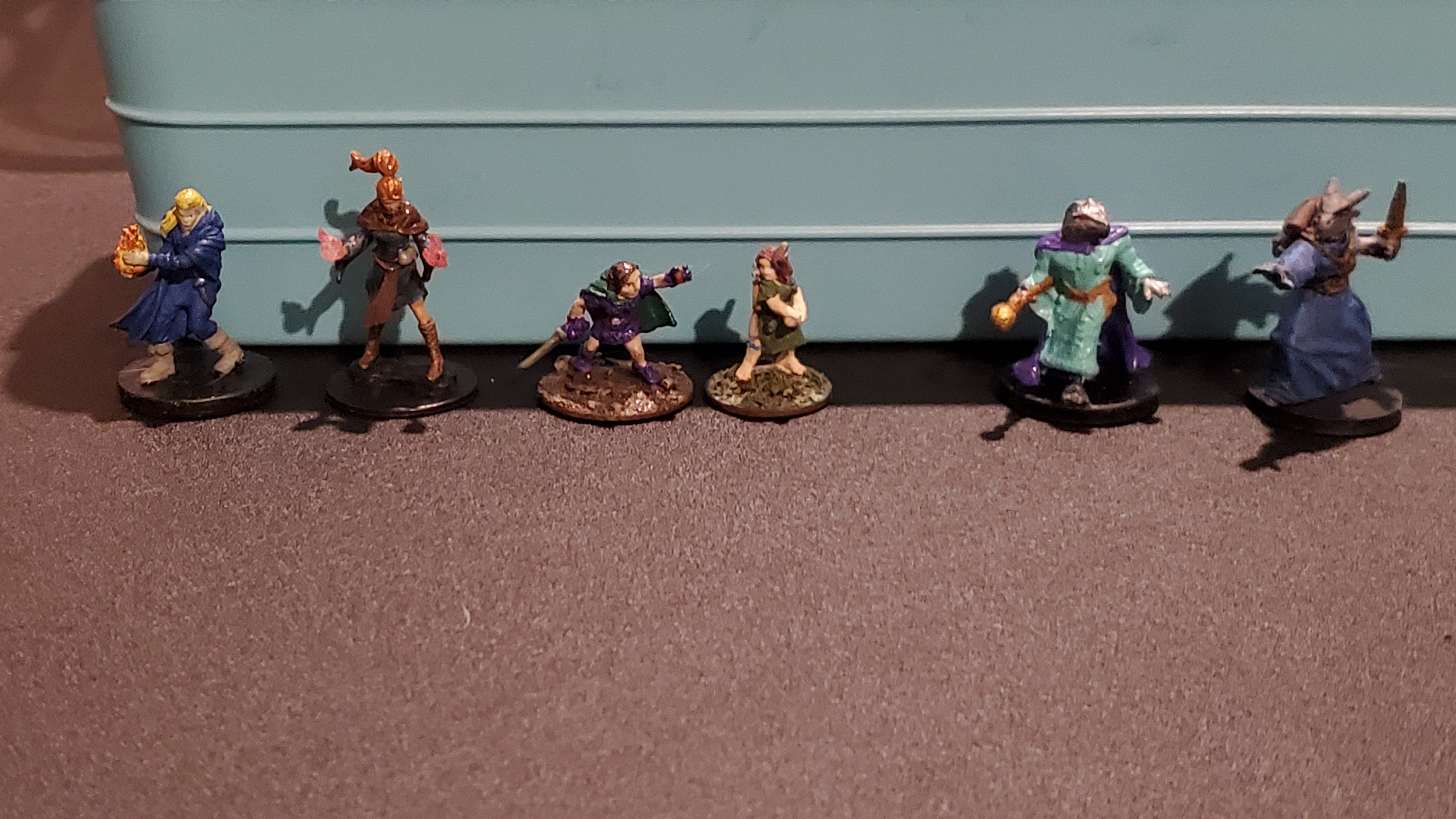 Since it is for a one shot, probably with new players, I will supply them with pre-generated character sheets. I have made male and female miniatures for each character so the player can be either.