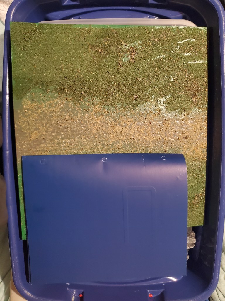 On top of that stuff goes the ground board (cardboard and foamcore) and the folder with the character sheets.