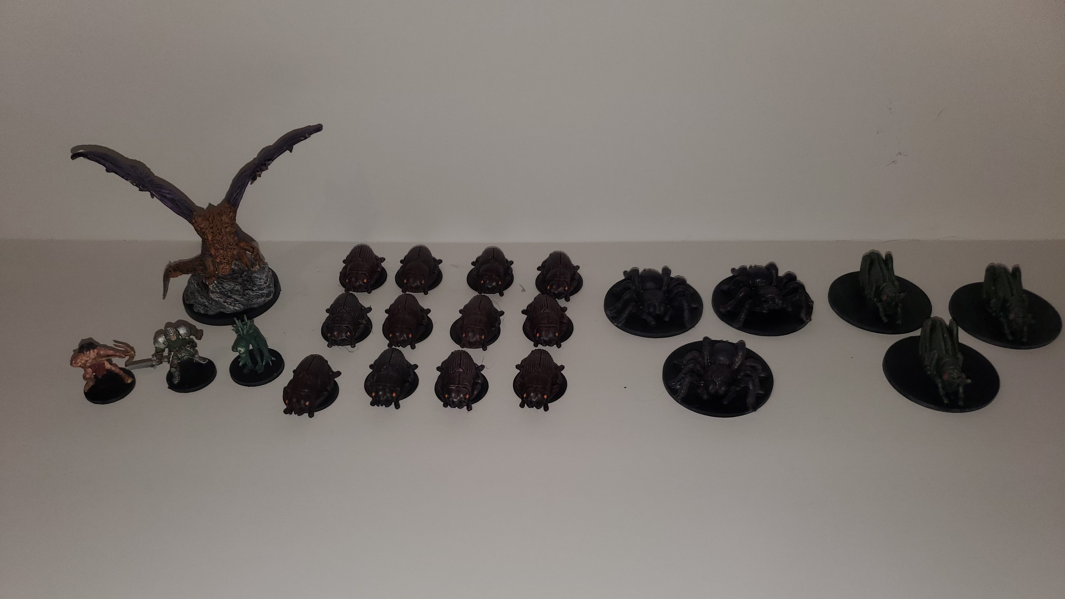 There were six different bugs in the tub so I did a couple of spiders and grasshoppers as well. I have a lot of spiders so I will end up giving these to my DM as well. (That is a good point: ALWAYS help out your DM whenever and however you can. Everything from making terrain and miniatures to just bringing snacks to the game.)