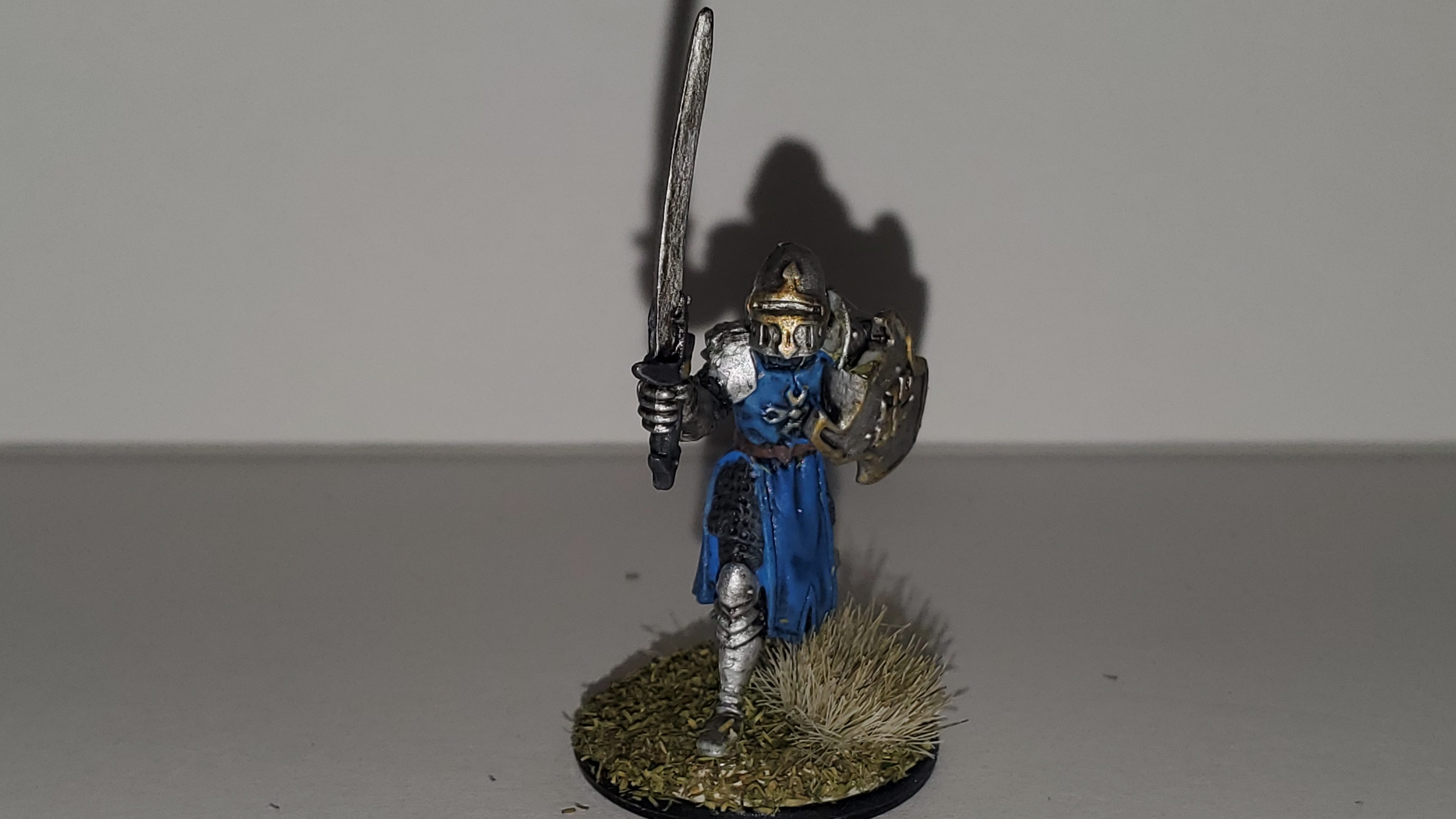 The Lord is mounted on a horse to give him good speed. His purple cape easily is seen on the battlefield. He gets 3 attacks and should be good in a melee fight.