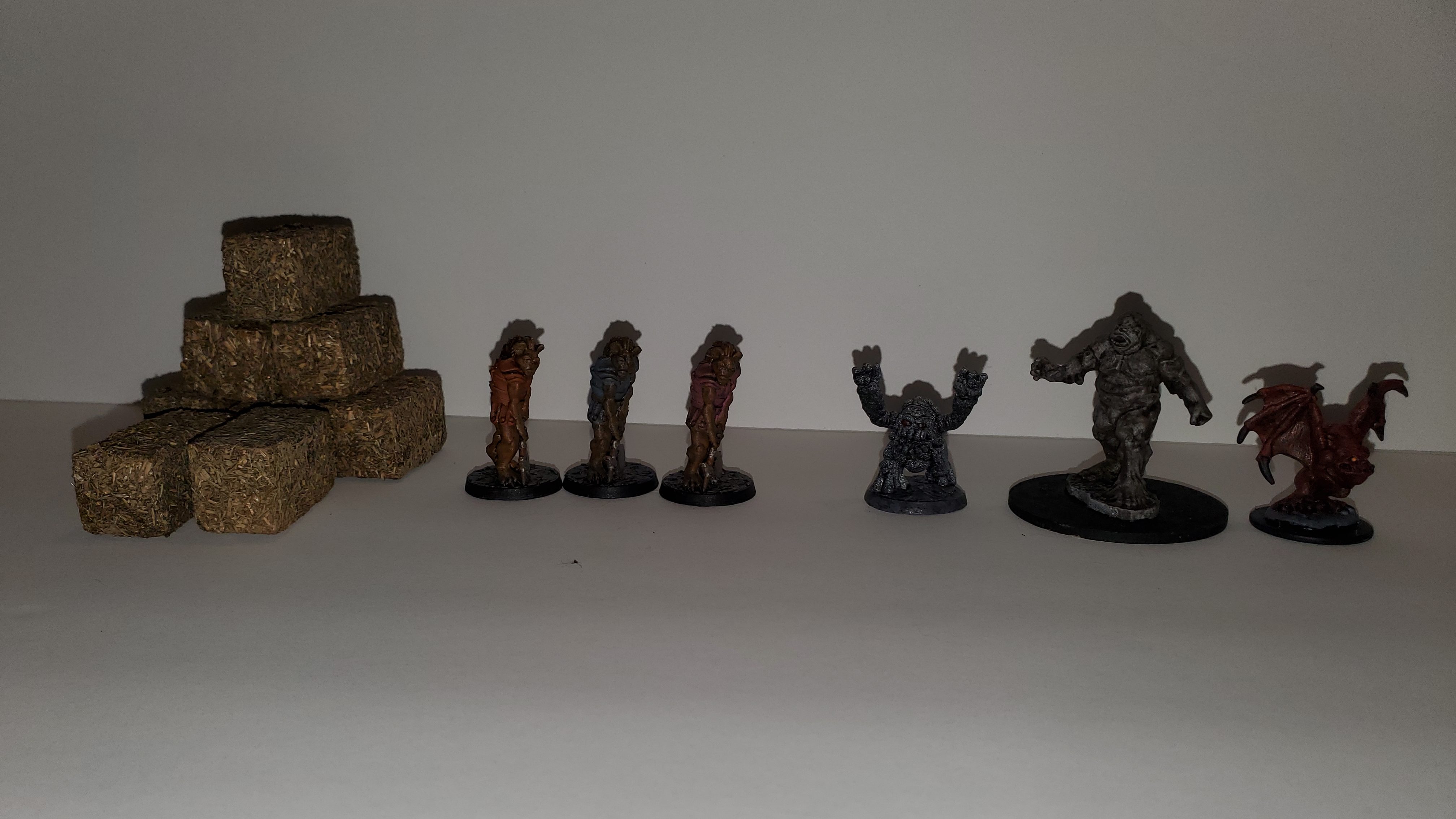 I got some hay bales finished (those were easy) along with 6 miniatures painted.