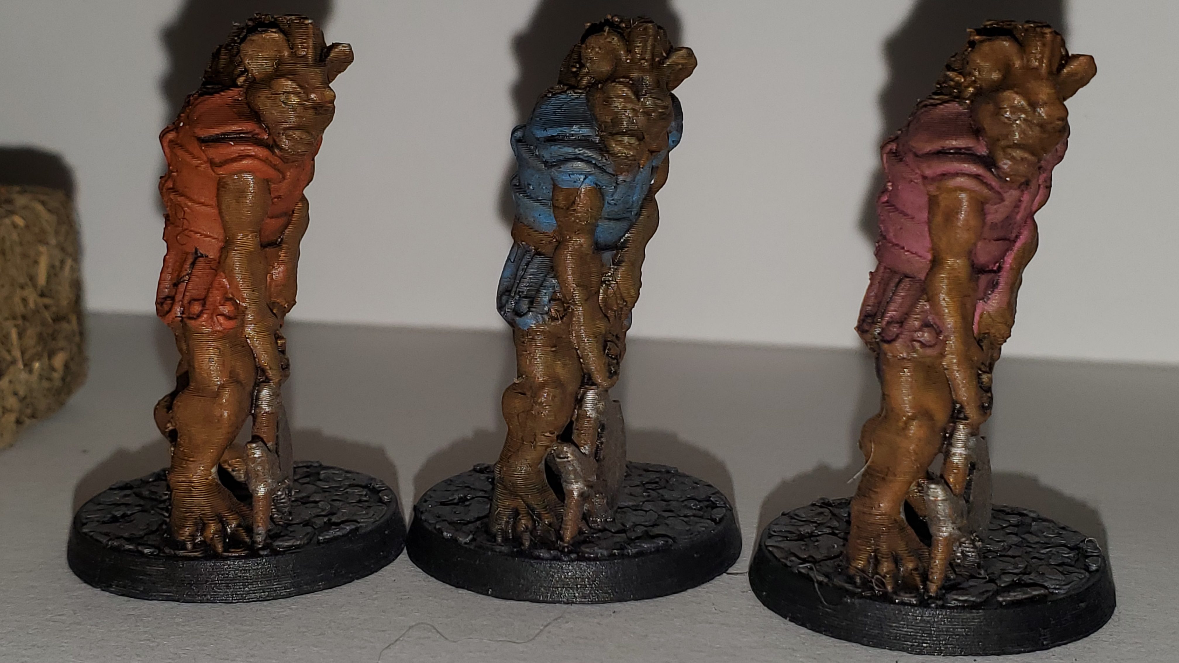 I printed out three gnolls and got them painted. Very simple 3 colors, a wash, and sealed. I might use these and a few other printed miniatures to build a Beastmen army for Age of Fantasy Skirmish. We’ll see what else I find on the Internet that looks like it would work.