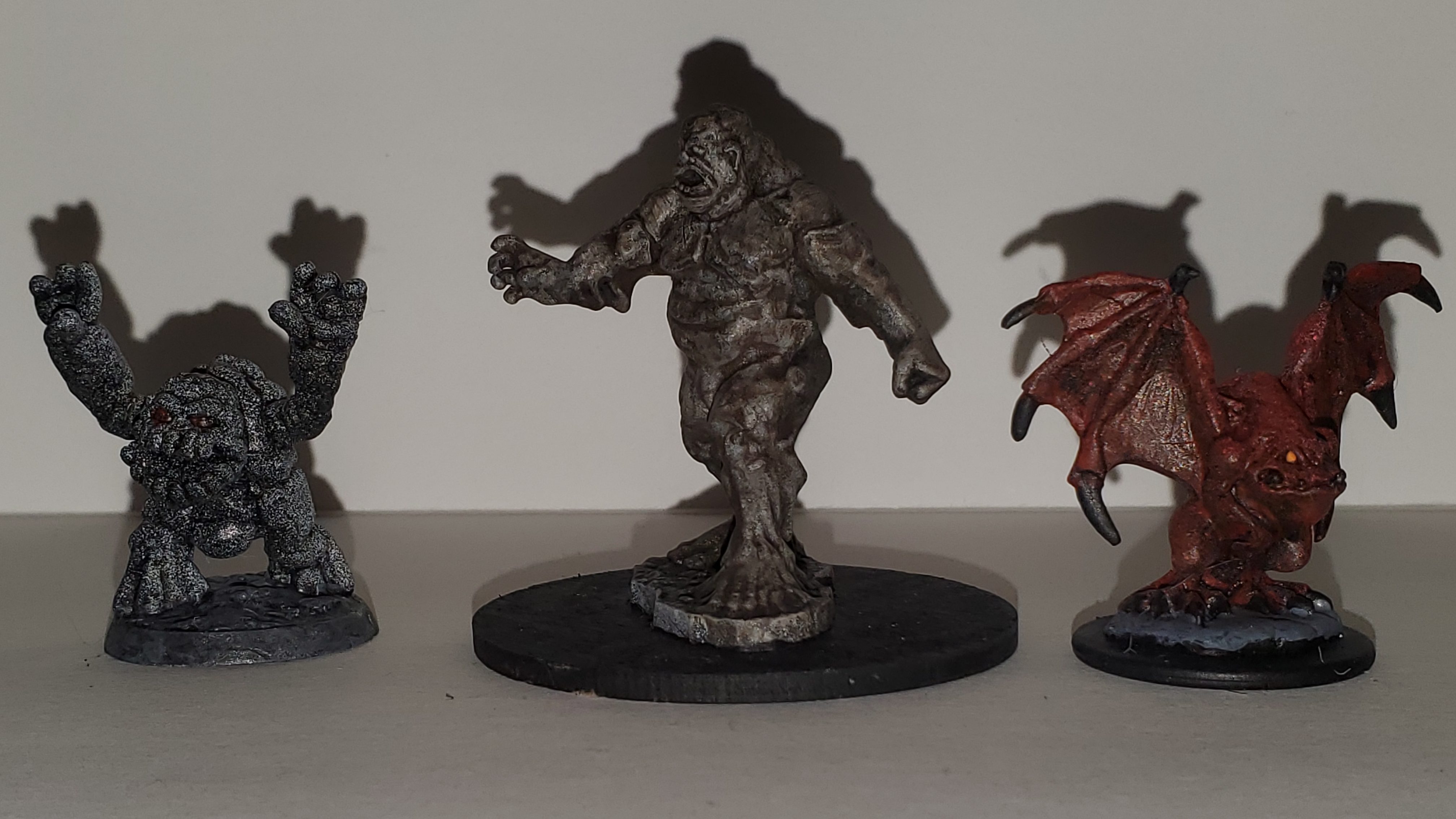 The first one is a boulderkin, the second is a golem (I am guessing mud), and the third is an imp; all are from the Bones 5 Kickstarter.