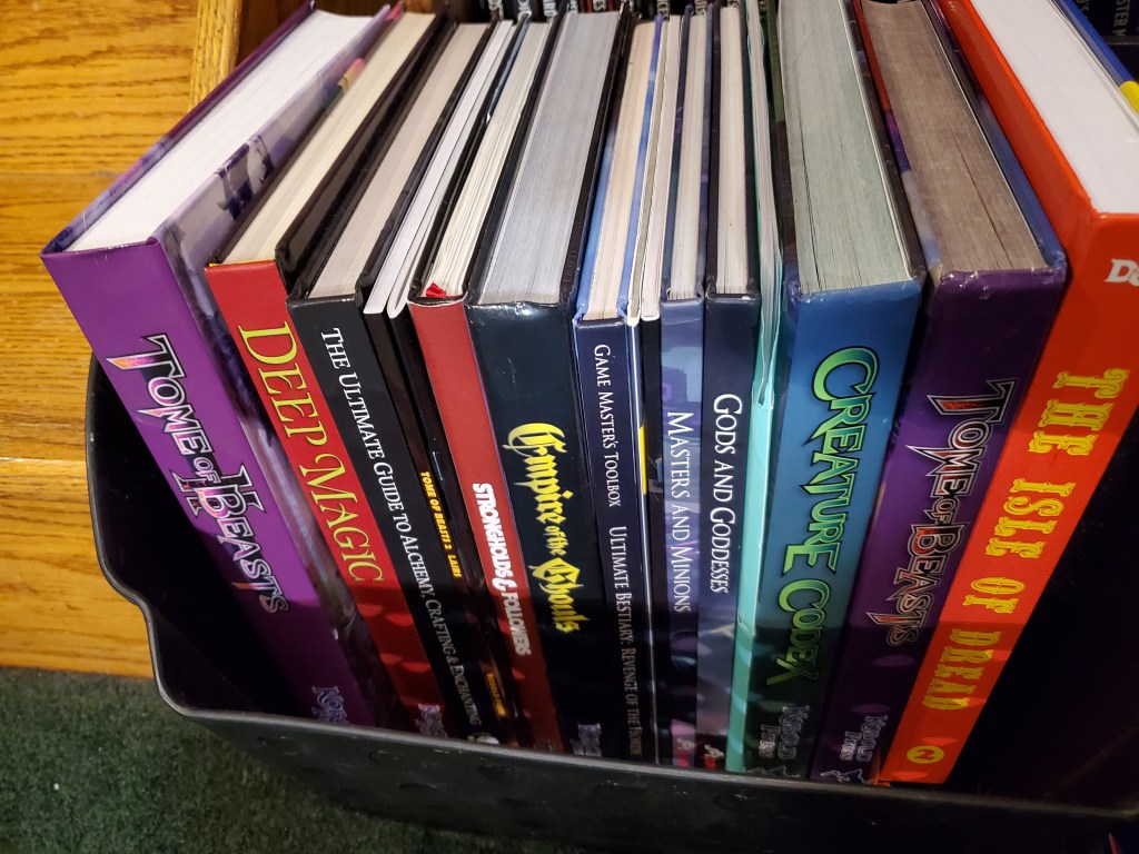 In the crate is all of the 3rd party books that I have gotten through Kickstarter (except The Isle of Dread, which was already released and I really like that module). Plenty of monsters and new spells in there.