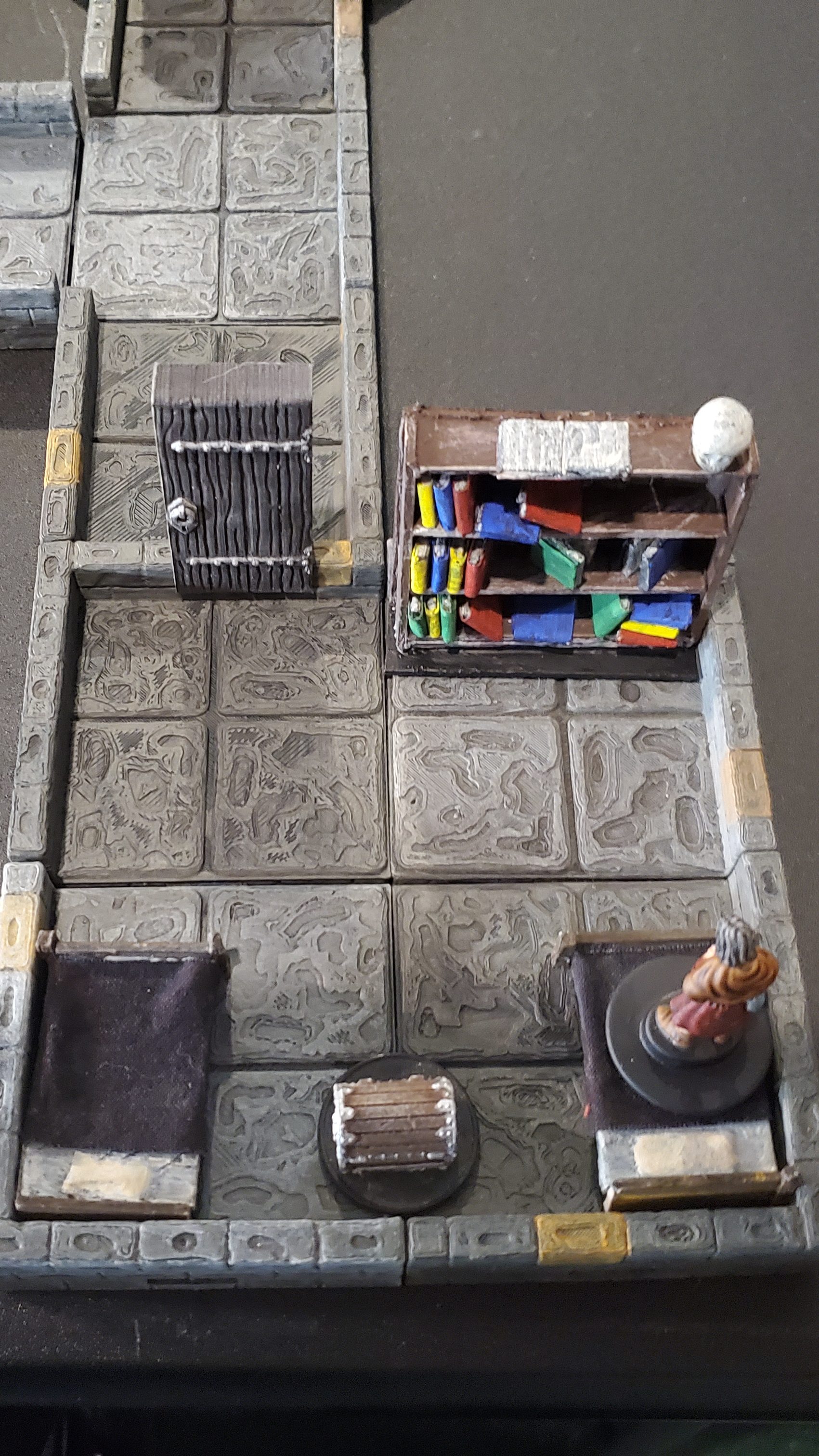 General Details for the Dungeon: All of the walls, floors, and ceilings are made from cut stone blocks. The ceilings are 10 ft high and there are no lights in the dungeon.