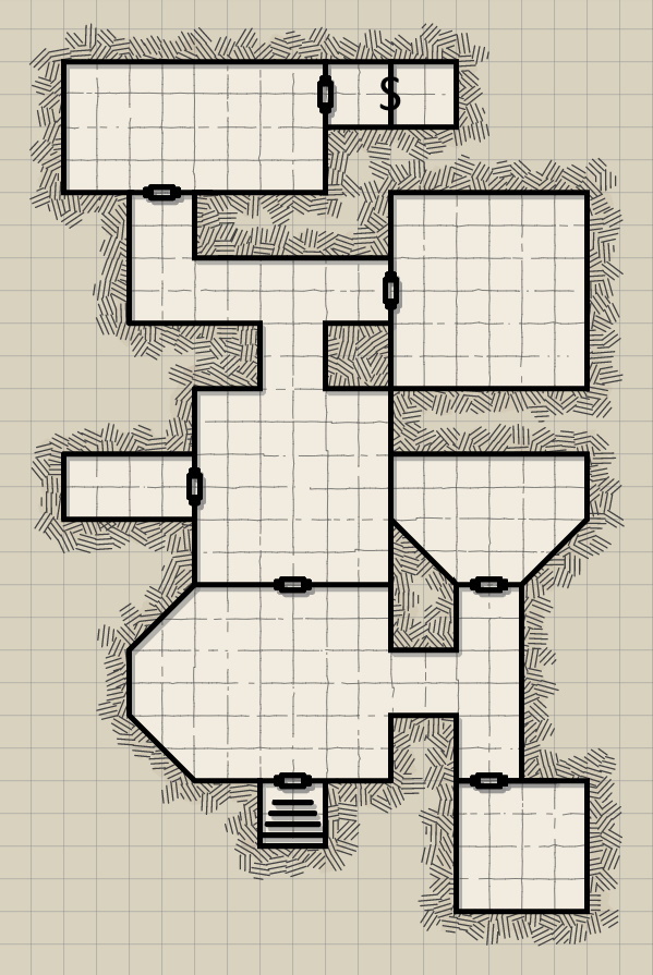 Here is the original map that was taken from Bexim’s Bazaar # 3 from March 2019. It was a magazine that The Tabletop Engineer used to make monthly, but it ended this year. The map looked interesting, but I needed to modify it slightly to go along with Wyloch’s True Tiles and the 1-1/4″ squares.