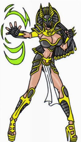 As Nefertiti, Sarah has an array of spells at her command. She has a mystic blast of energy that she can launch. She can summon mystic binding and charms. She also has plenty of defensive spells like force field and shield. She can fly and teleport short distances if needed.