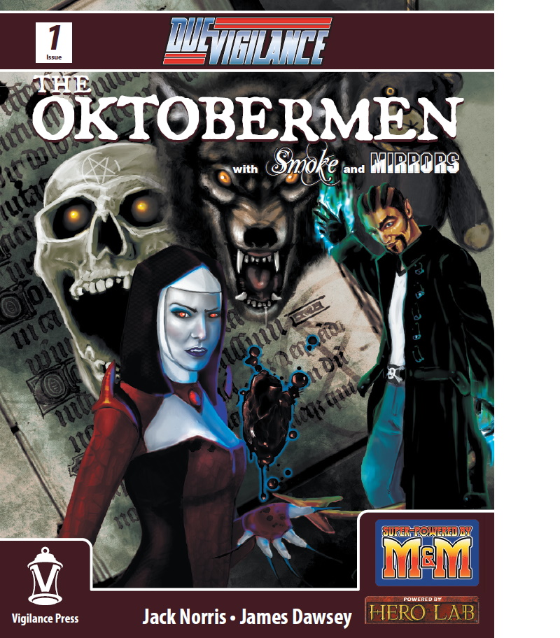 Since we are on a superhero kick at the moment, let’s look at some of my favorite supplements for Mutants and Masterminds 3rd edition. First, up will be Due Vigilance Issie 1: The Oktobermen!