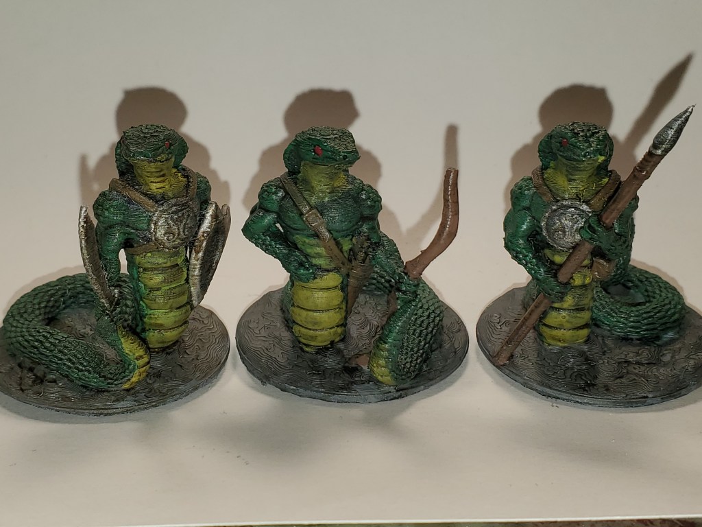 Here are some snake men from Fat Dragon Games. I might look into getting a smaller nozzle for my Ender 3 (0.2mm) so I can get better-looking miniatures but I also print terrain and I don’t want it to take forever to print. I might have to invest in another printer.