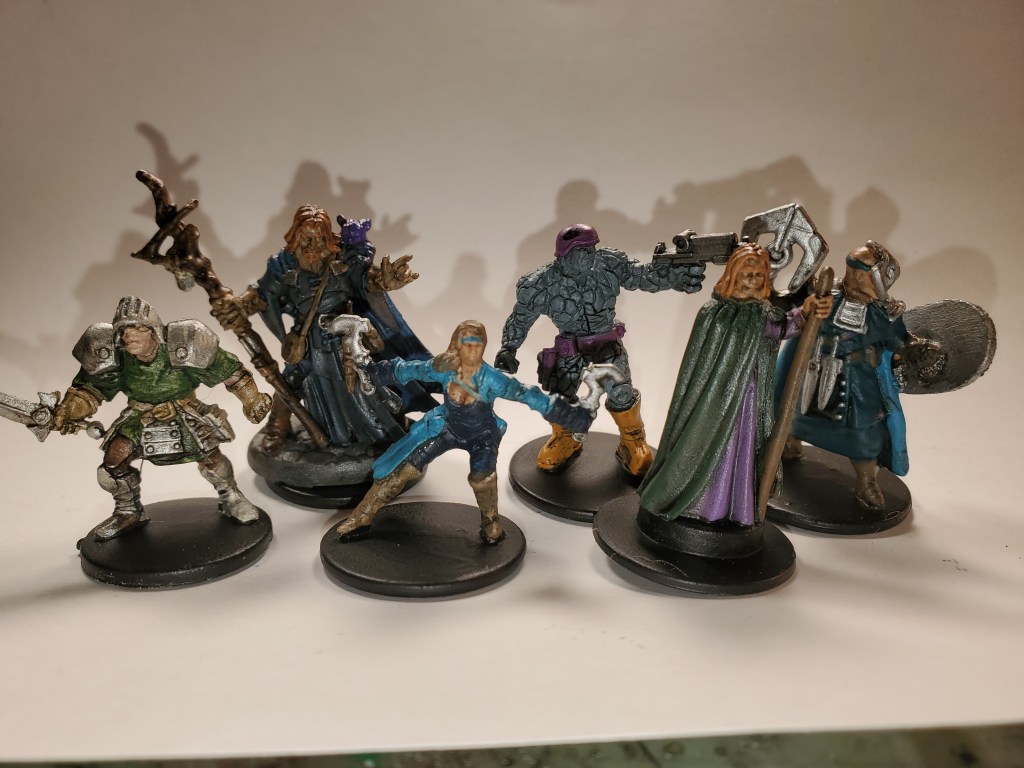 Back Row: A wizard from the Bones 5 Kickstarter, a Mage Knight figure that was rebased and touched up, and a “cleric” looking figure for the Magic the Gathering game.