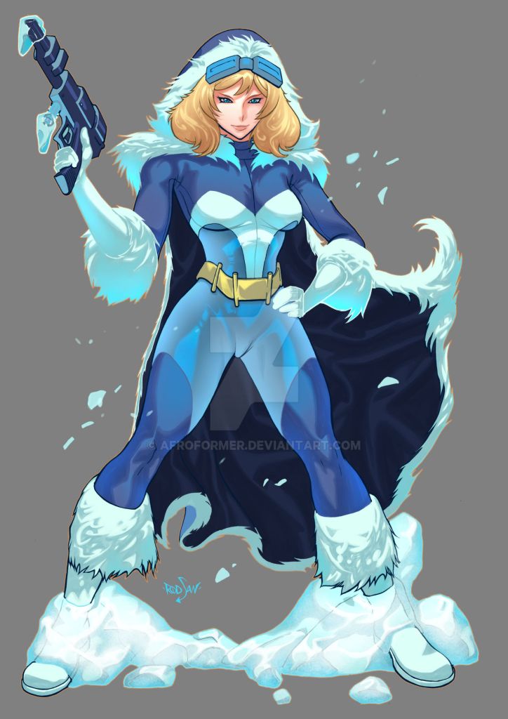 We give her the name of Sally Snow and the heroic identity of Snow Angel. Her gun will shoot out a snow blast. The ranged area effect can be a snowball that is launched out and explodes into a freezing blast that knocks villains out.
