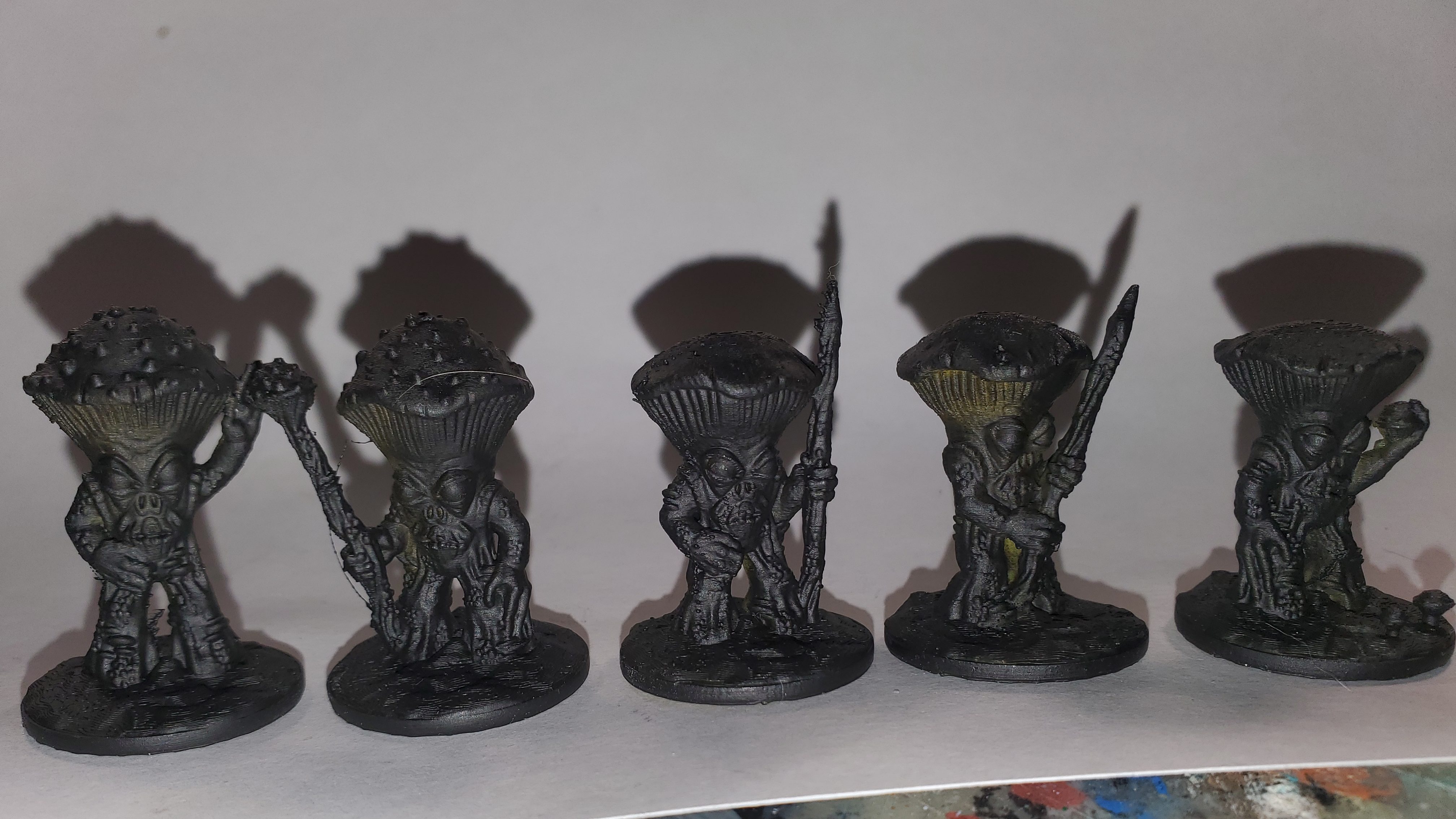 I also printed and primed some mushroom folk from Fat Dragon Games. I think I am going to throw them into the Giveaway pile for the end-of-the-month drawing. If anyone is running an Underdark campaign like Out of the Abyss, these guys are great miniatures.