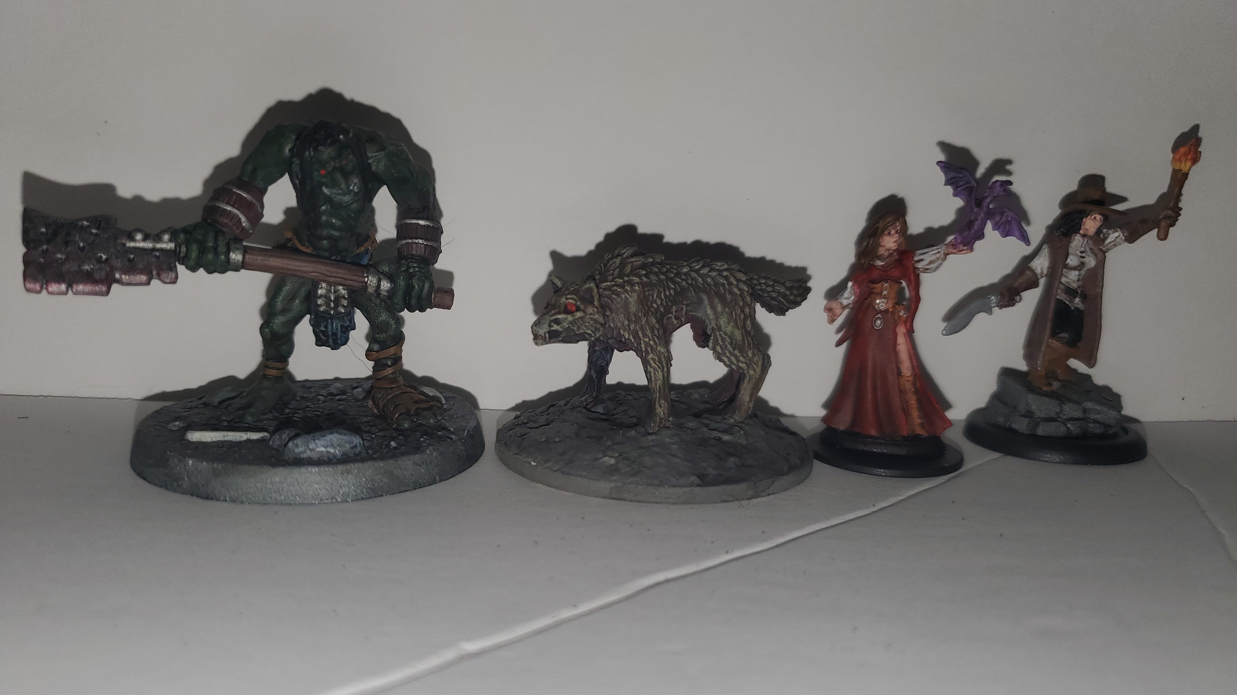 All of these miniatures are from the Bone 5 Kickstarter. The wolf got a simple 3 color paint job with browns and he was done. I spent more time on the troll and adventurers, especially since the ladies could be used as PC characters and those will be on the table week after week.