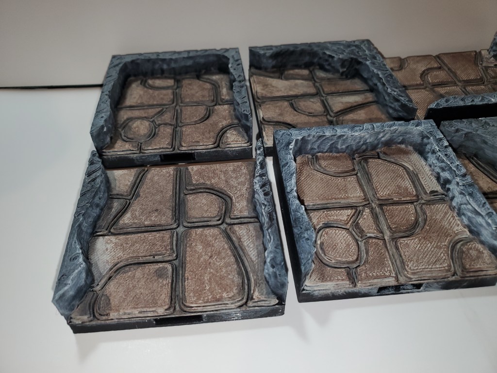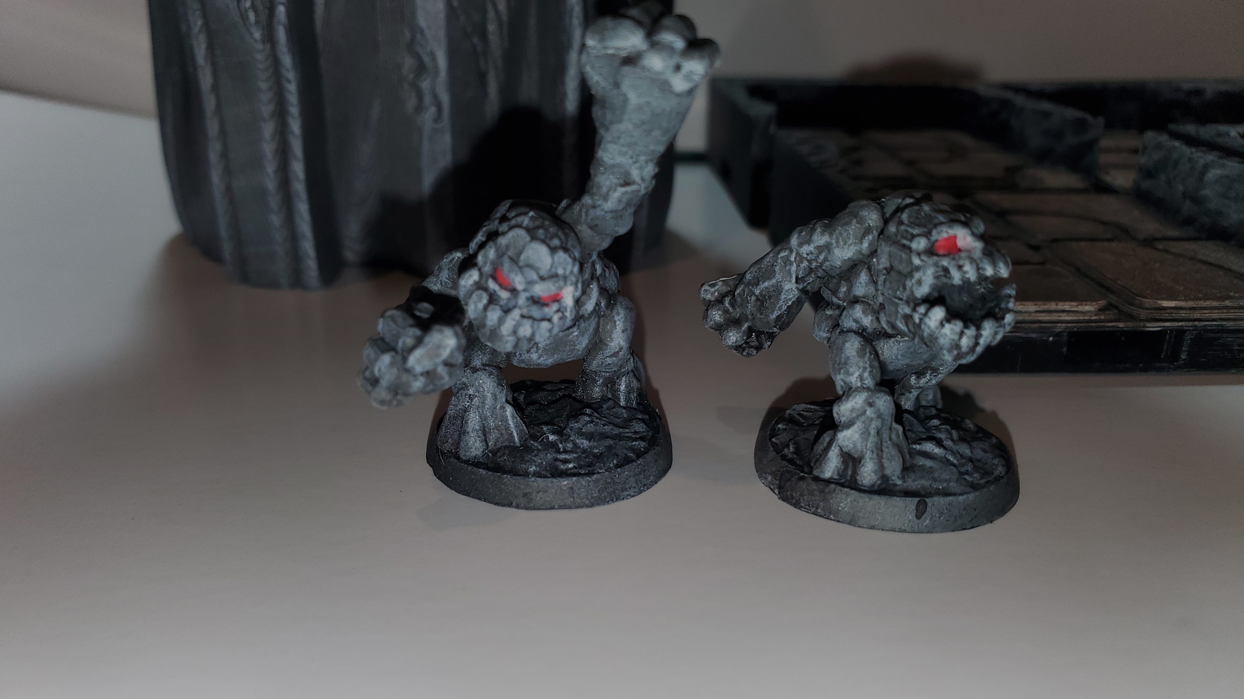 The giant monolith statue and the cavern tiles are both 3D printed. The earth elementals were not 3D printed.