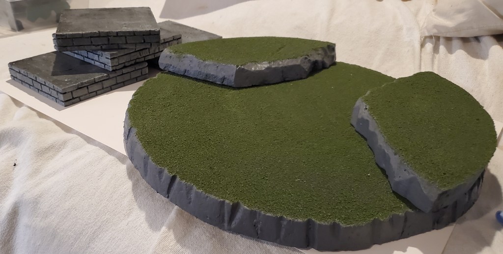 This week I was able to complete a few new pieces that I am building for my new one-shot adventure. I made a new grassland UDT with some hills as well as four stone risers that are 5″ x 5″ x1″.