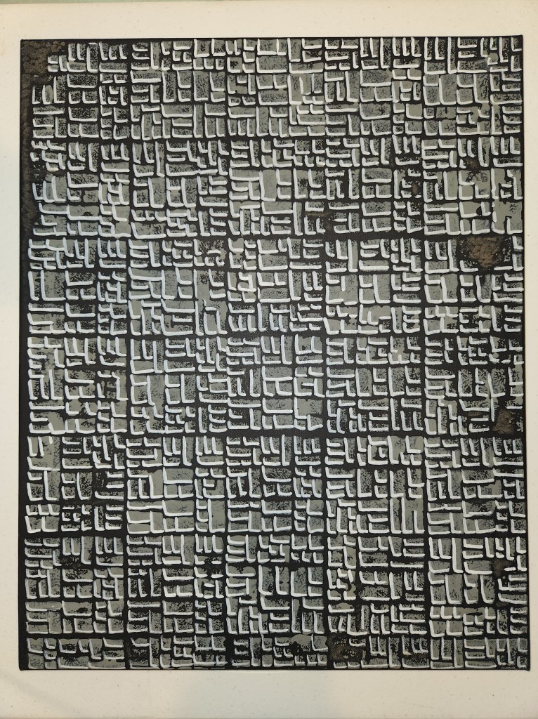 The canvas was 16″ x 20″ white canvas so I started by spray painting it black, While that was drying I made the foam stamp from some foam-core board.