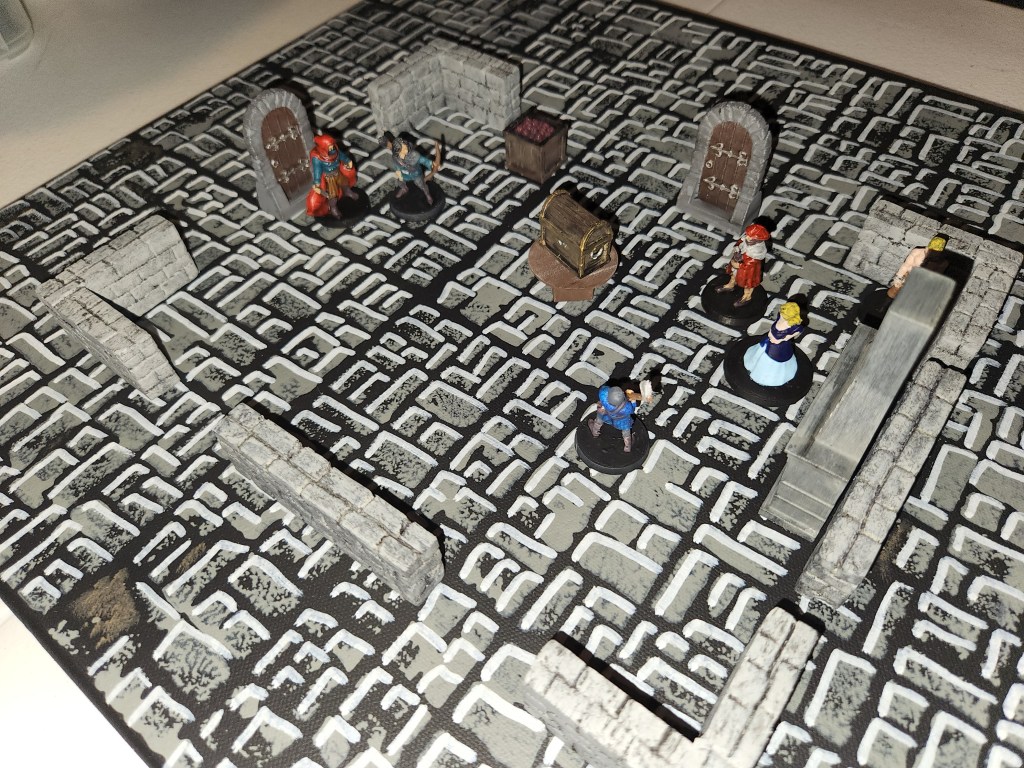 Here are a few shots of the game board with some UDT walls, a couple of doors, and some miniatures and scatter terrain from the one-shot I am finishing up. Enjoy!