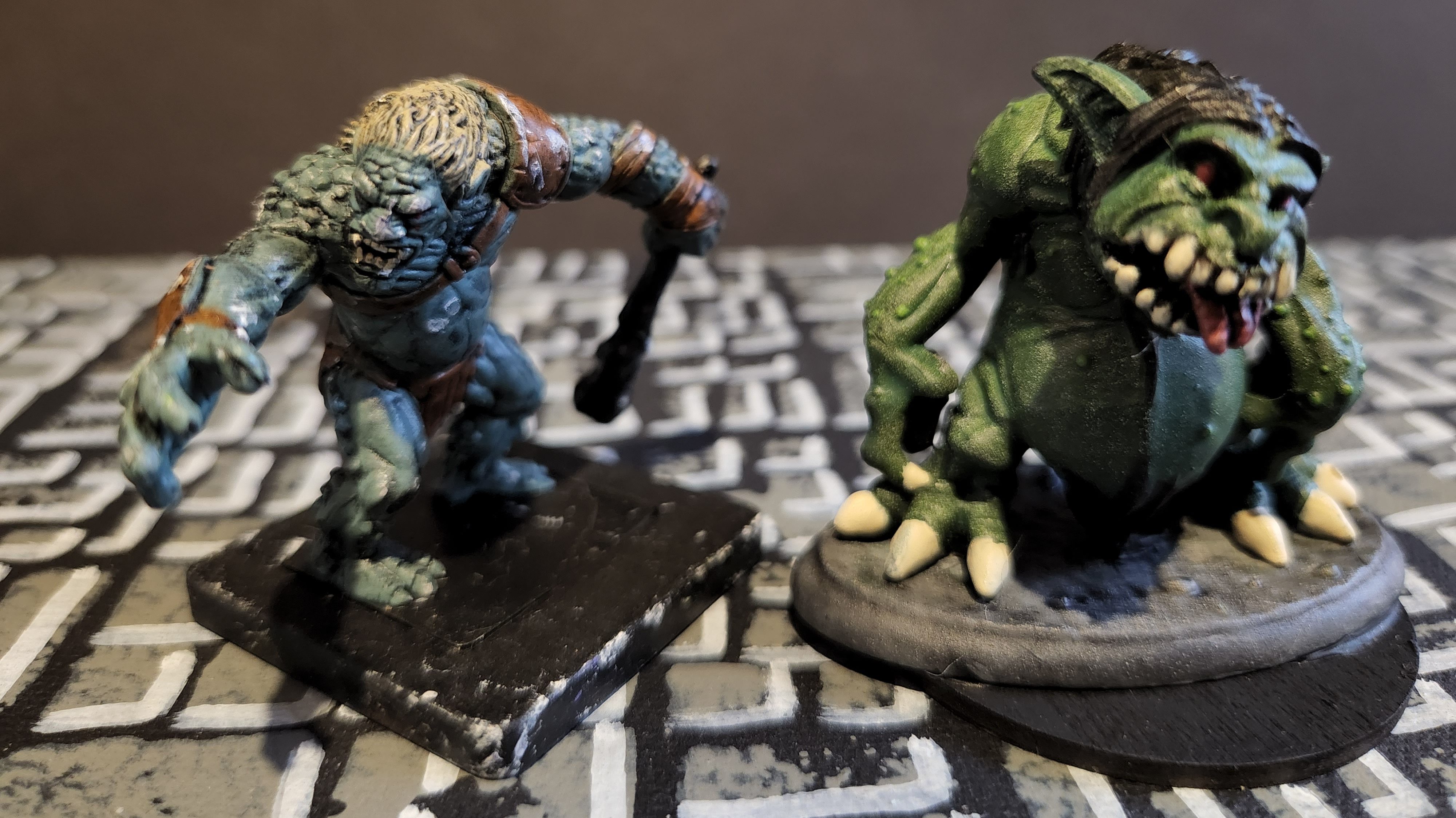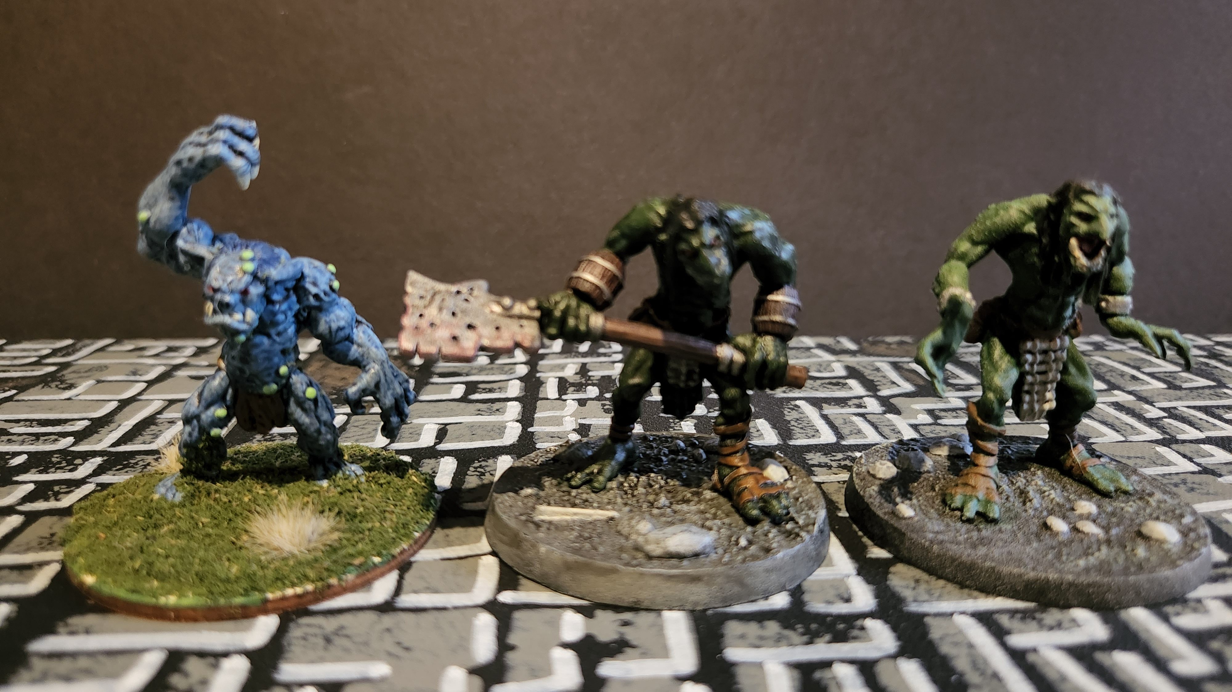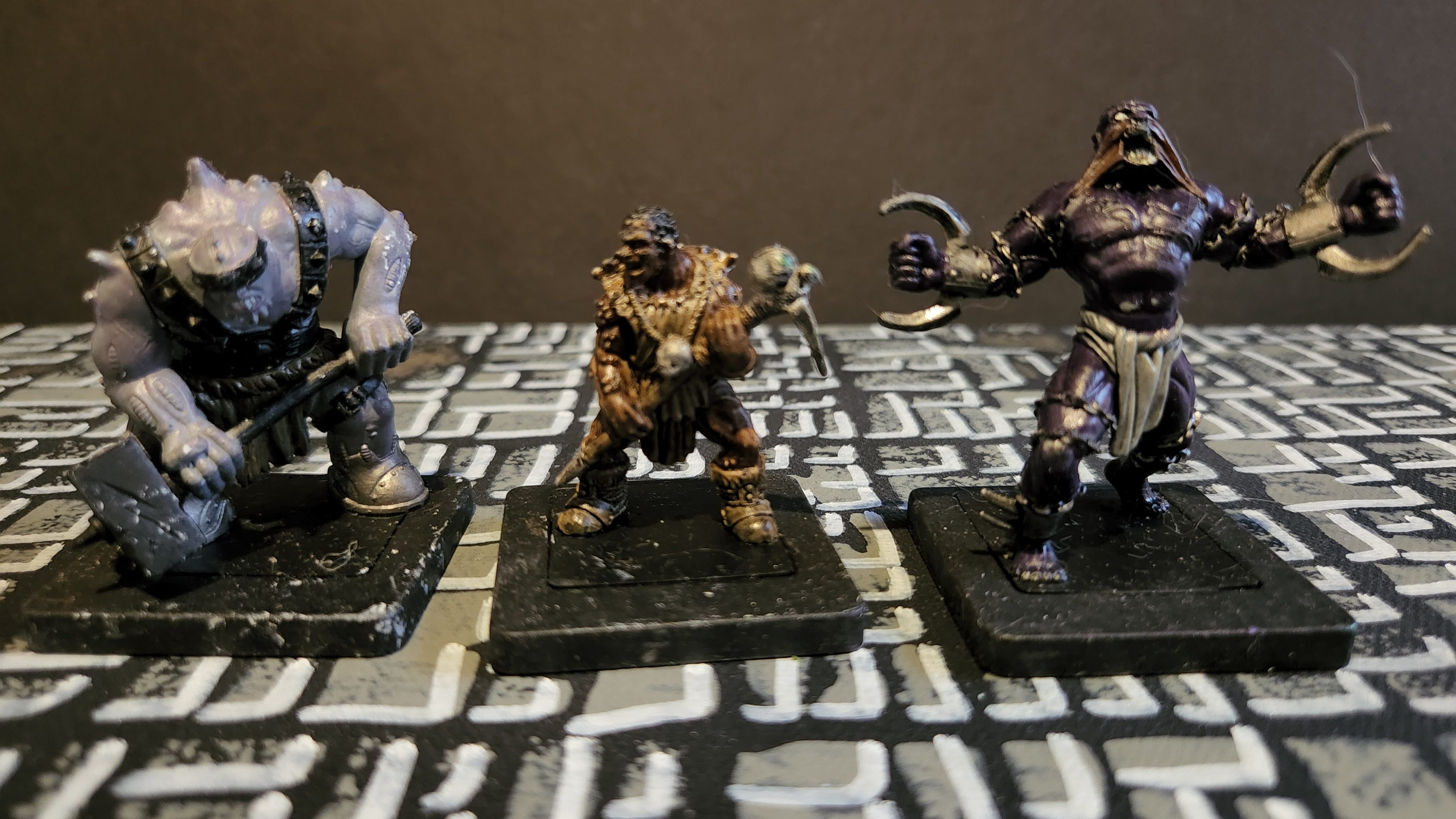While putting my Ogre Warband away today, I realized I have many of these types of creatures in the storage box. I thought I would share them with you. The models are from Dreamblade, Wizkids, Reapers, and many other companies and boardgames that I don’t even remember where I got them all.