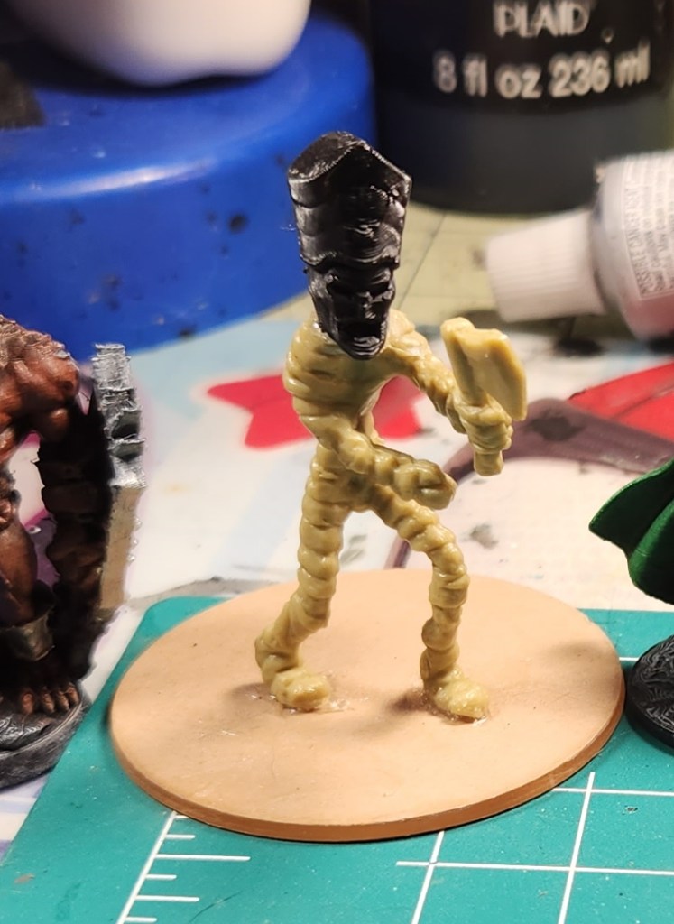 - I am kit-bashing a mummy lord for an AoFS army. I bought a pack of mummies from Dollar General and 3D printed out a better head. I pinned the head to the body and glued it with E6000. I will prime him black then get some paint on him. We’ll see how it looks when complete.