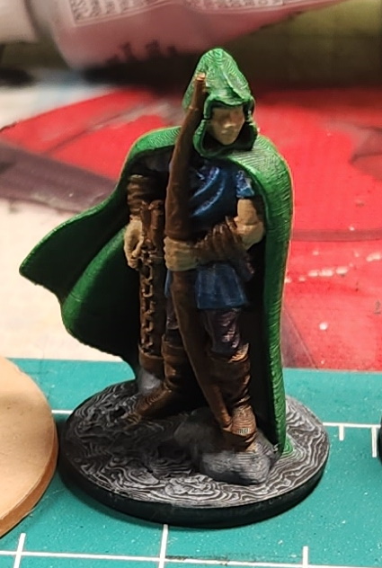 - I have a ranger-type character that I have mostly painted. He just needs some washes and the base painted. He should be finished up today or tomorrow.
