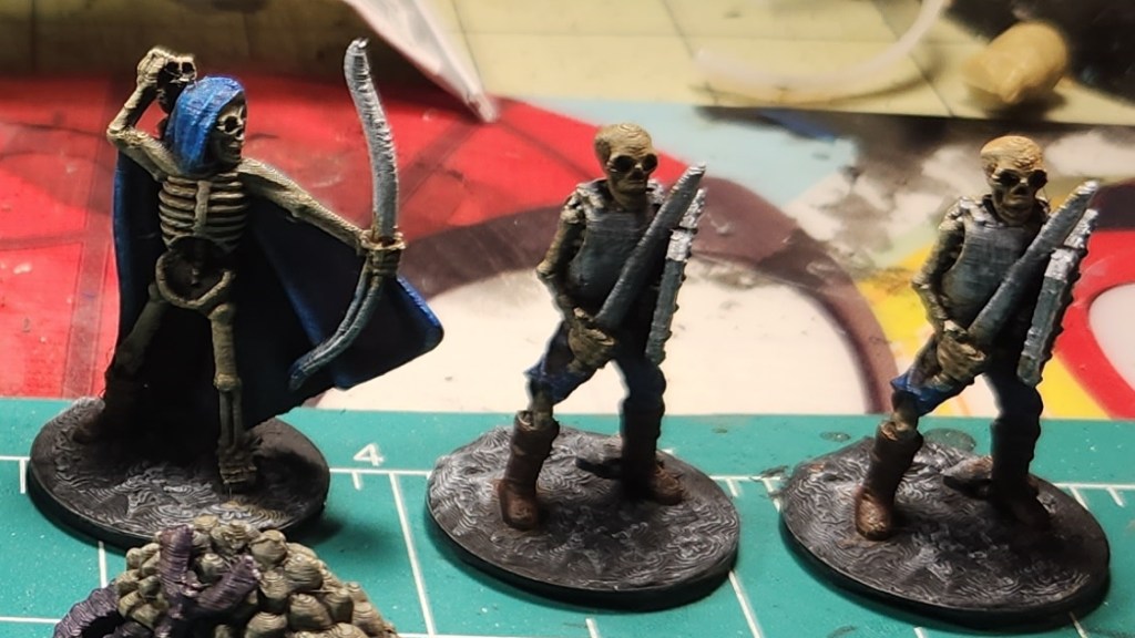 - I have three skeletons in process. I have some colors on them. I need to spend some more time on them.