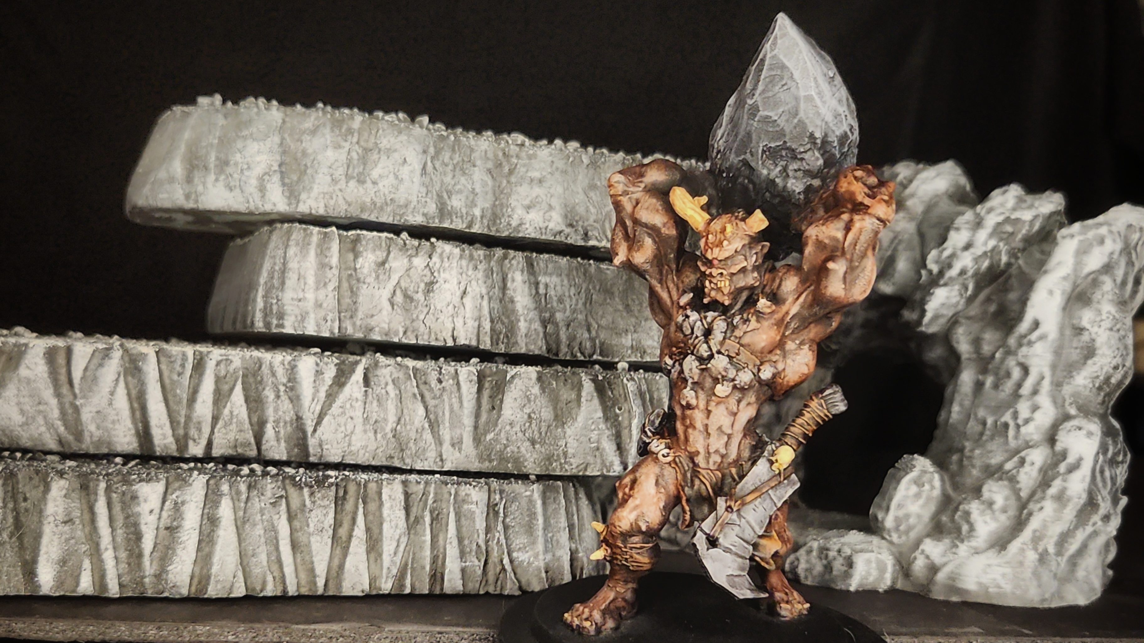 A cliffbreaker cyclops (Massive Darkness) prepares to throw a rock at intruders into his territory.