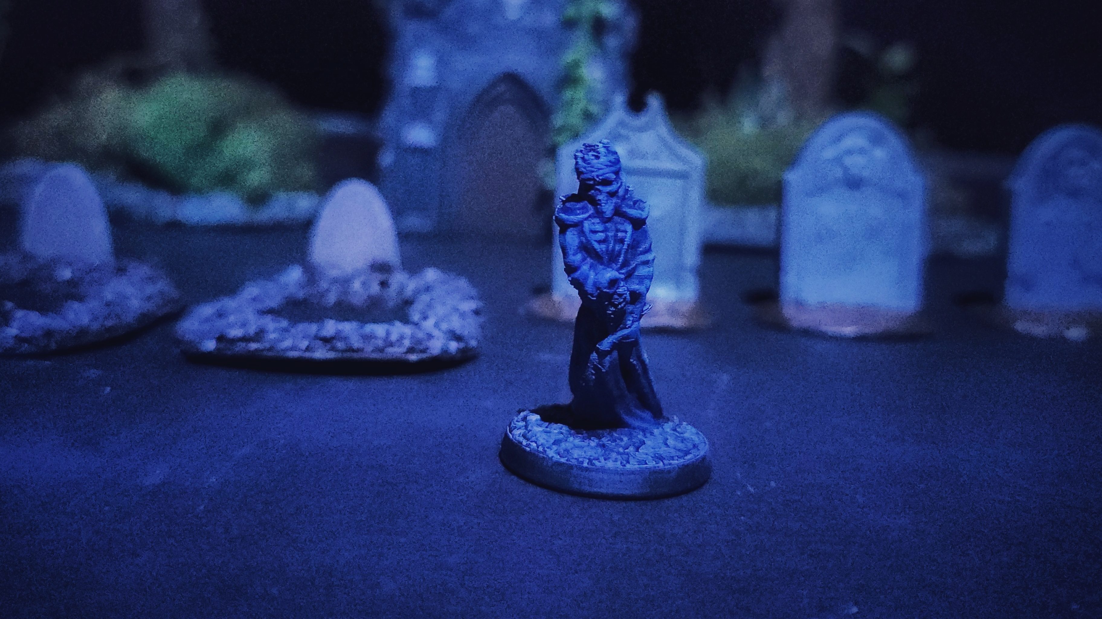 A wraith (Brite Minis) floats through a graveyard, seeking revenge on its killer.