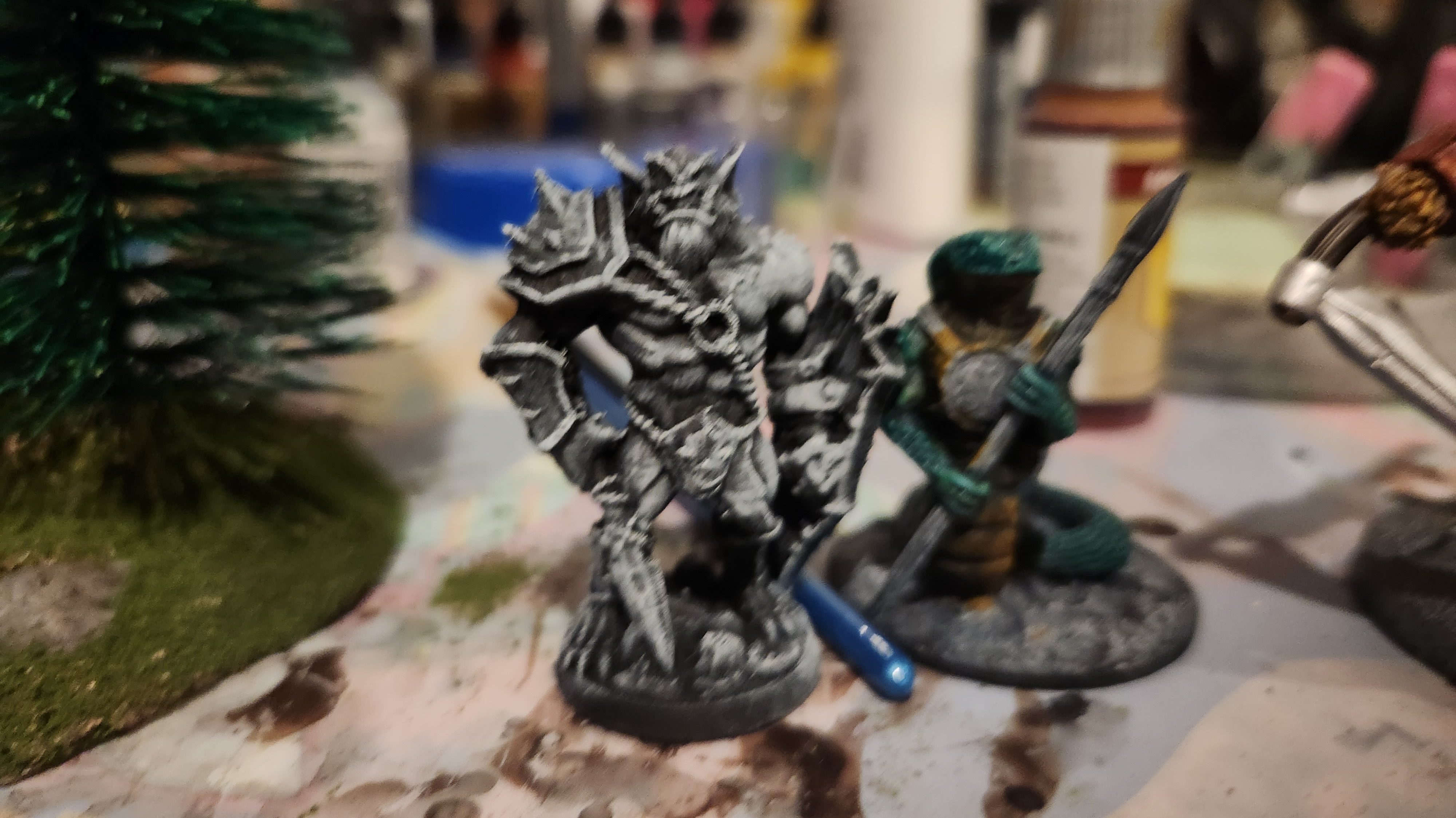 A 3-D printed bugbear (Lost Adventures Co.) and Snakeman (Fat Dragon Games)