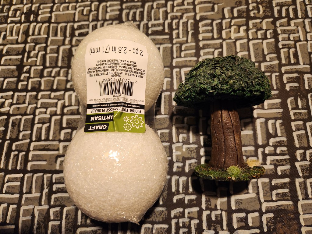 I got 2 packs of these foam balls. I am going to make some more trees with them. I placed one in the picture as an example. I think this time I will 3D print out the trunk and make the top. While I like these trees, I think the trunk is too think and it is a little heavy (it is made from air-dry clay).