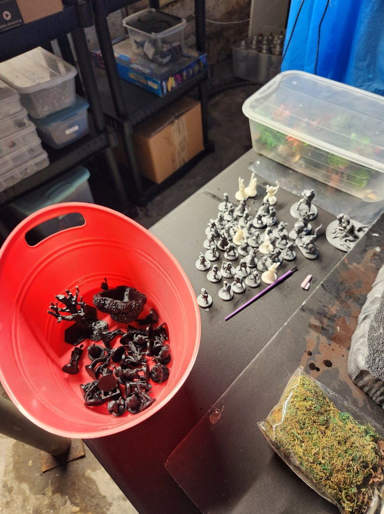 I continue to print more and more miniatures. There are cultists and gnolls in the orange bin that ready for some paint (they are coming up in a random encounter that was generated by ChatGPT). I also have another tree in the mix just to add to the collection.