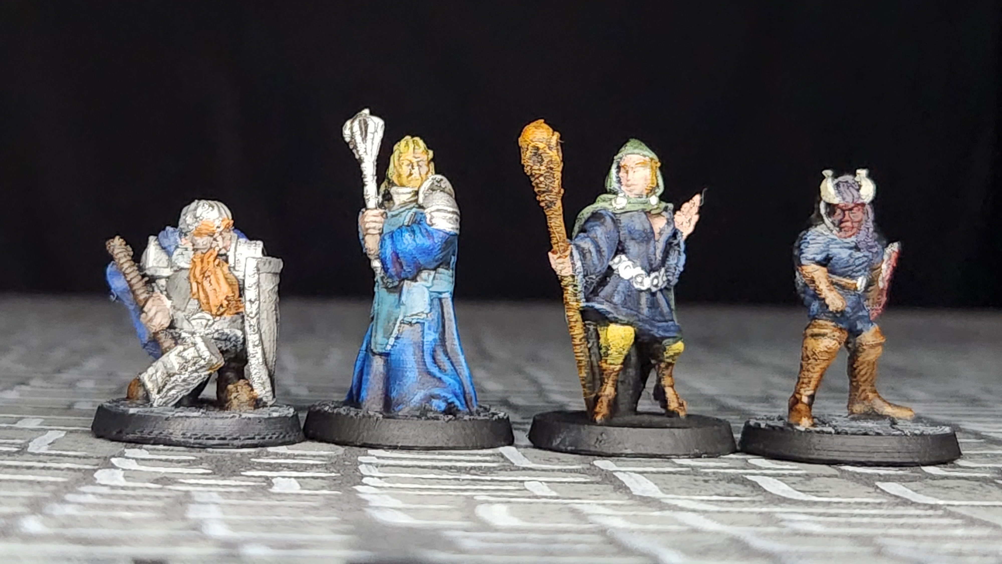 First up, we have the adventurers for the Delain tomb: a dwarf fighter, human cleric, elf wizard, and tiefling rogue.