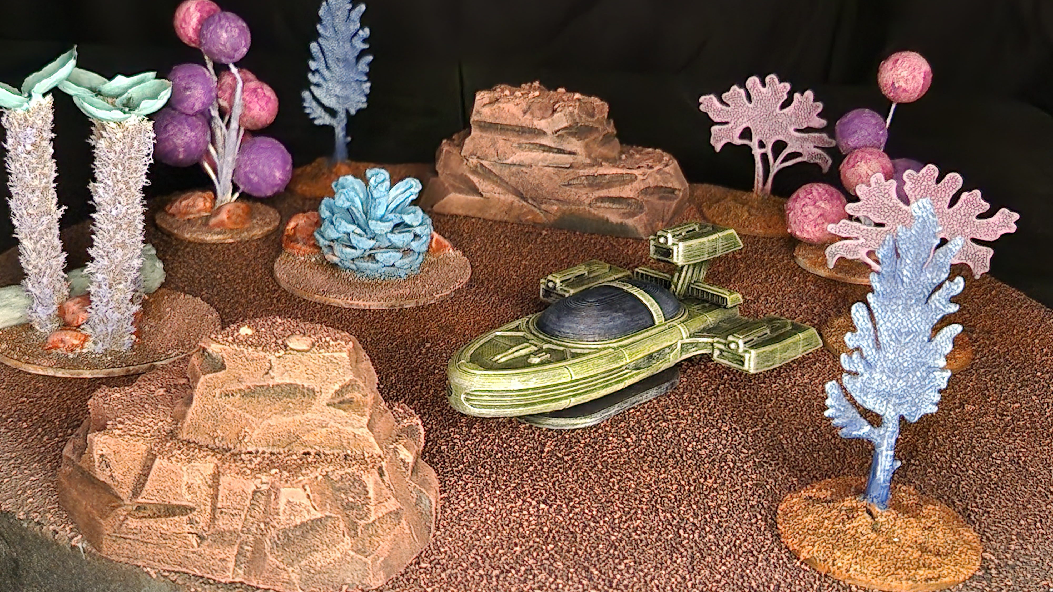 I found this Landspeeder and had to print it out. It looks like it could fit in with a Star Wars Legion table. I FINALLY got a chance to break out all of my red planet scatter terrain and UDT for a picture! I got the model from EC3D, a new designer that I have found on the net…