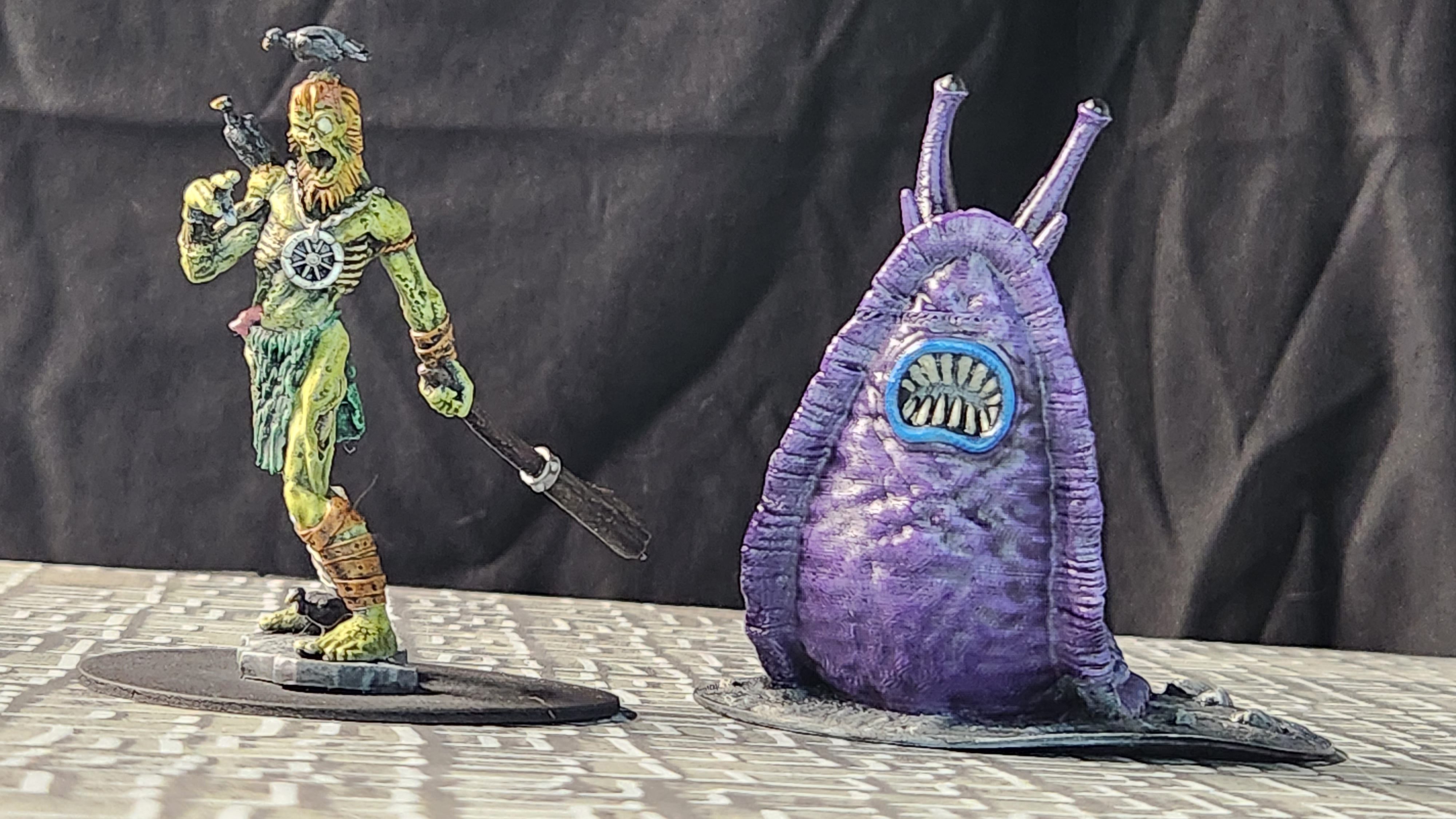 A giant zombie from the Bones 5 Kickstarter and a Giant Slug from Fat Dragon Games.
