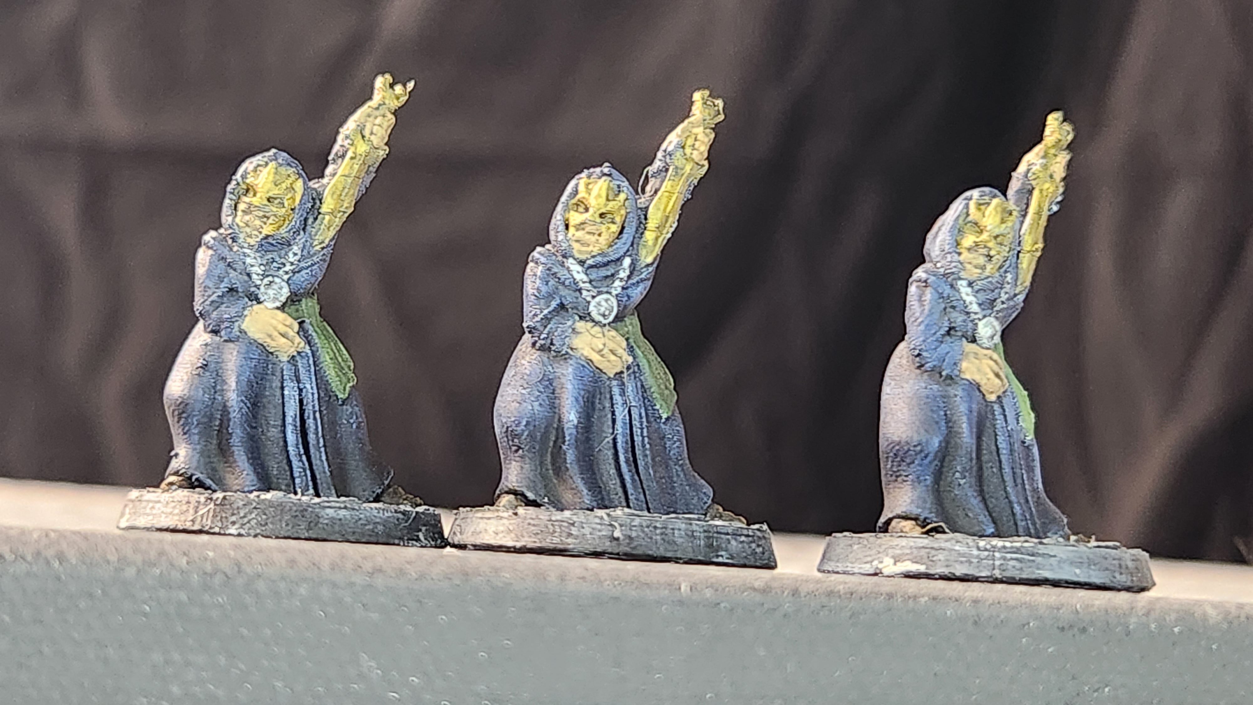 Three cultists from BriteMinis. I might use these for the free miniatures I give out with every order from my online stores.