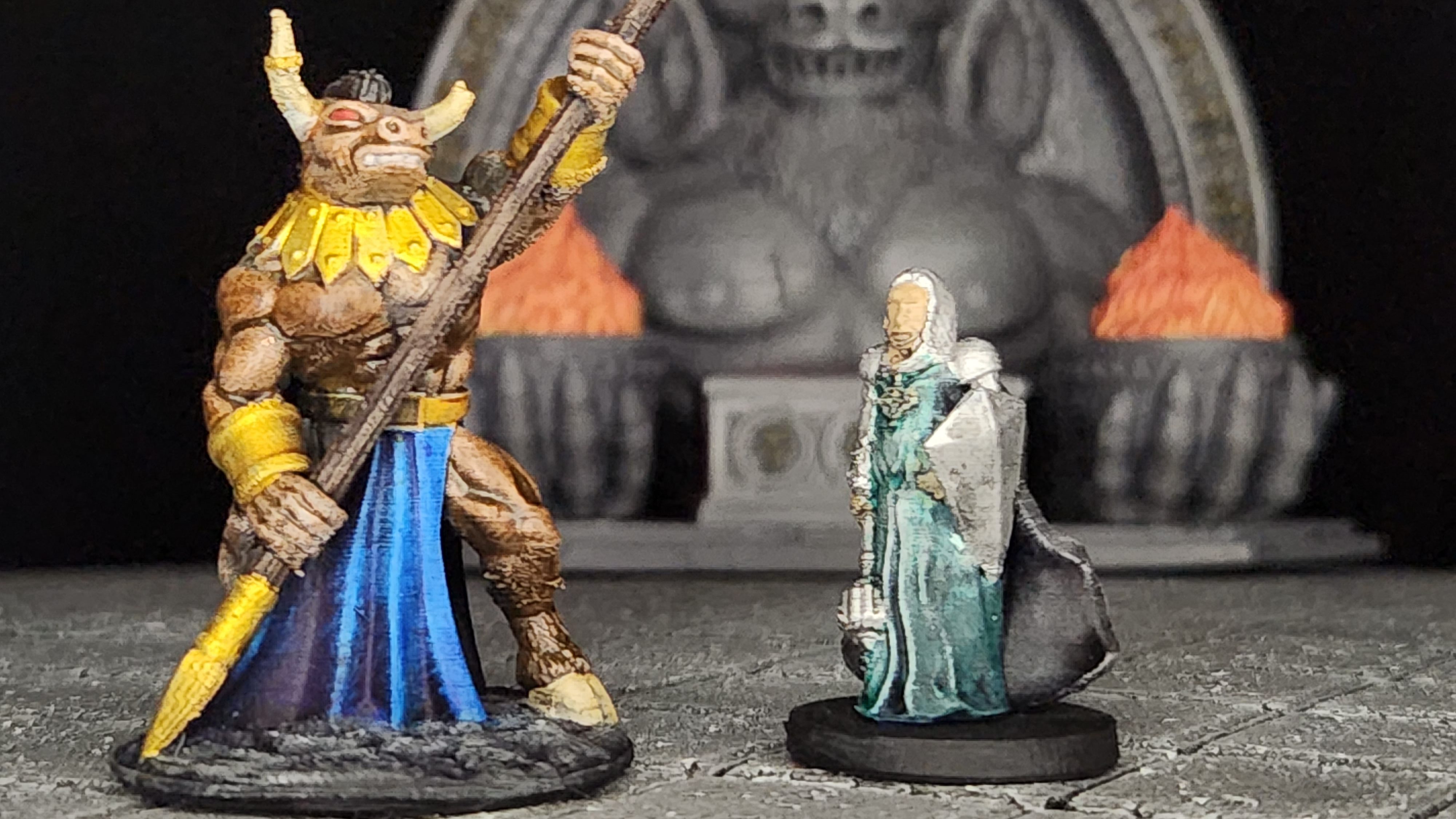 The minotaur miniature is from Fat Dragon Games and the priest is from BriteMinis.