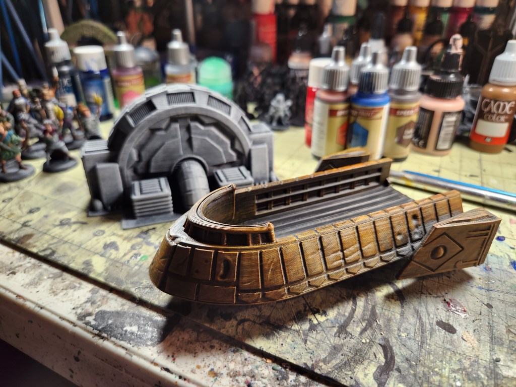 I am starting to get more into printing Sci-Fi terrain and miniatures. Here is another cargo skiff and a power generator. Both of them should be in scale to be used with Star Wars Legion, Star Wars Shatterpoint, etc or they can be used with other Sci-Fi wargames like 5 Parsecs from Home or Stargrave. I have another skiff printed out and another generator on the printer right now.