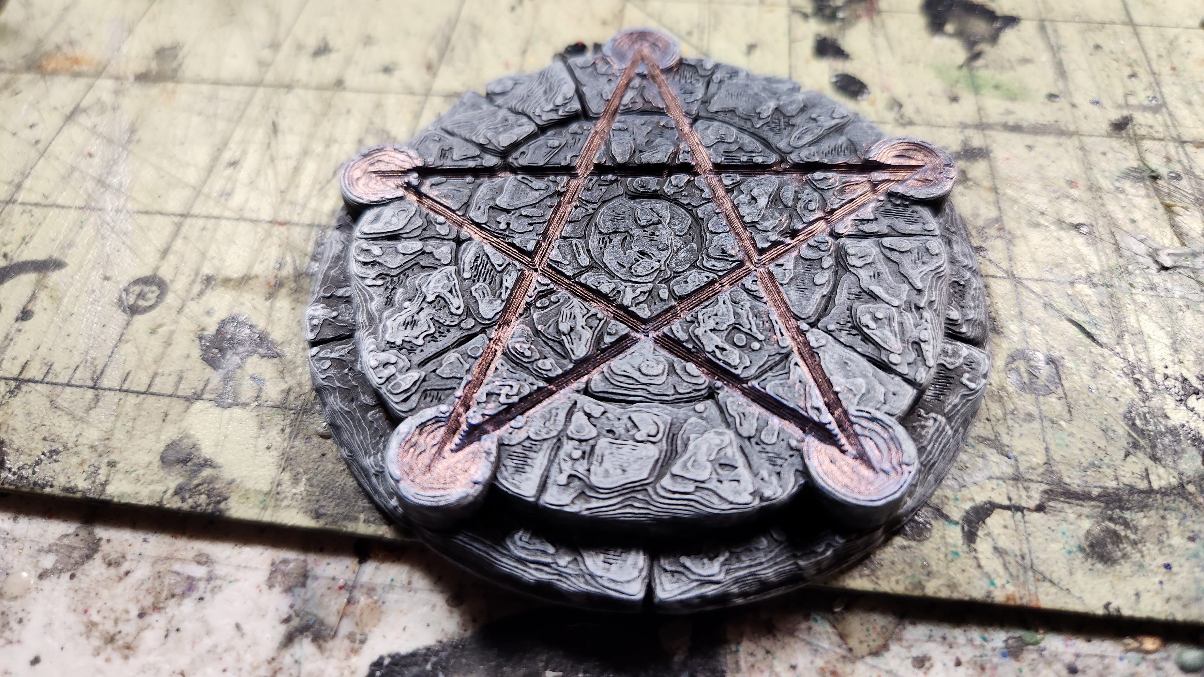A nice terrain piece, also painted with the new paints. I like how the light shines in the cracks of the pentagram. I will probably throw this piece in an online order as a bonus piece.