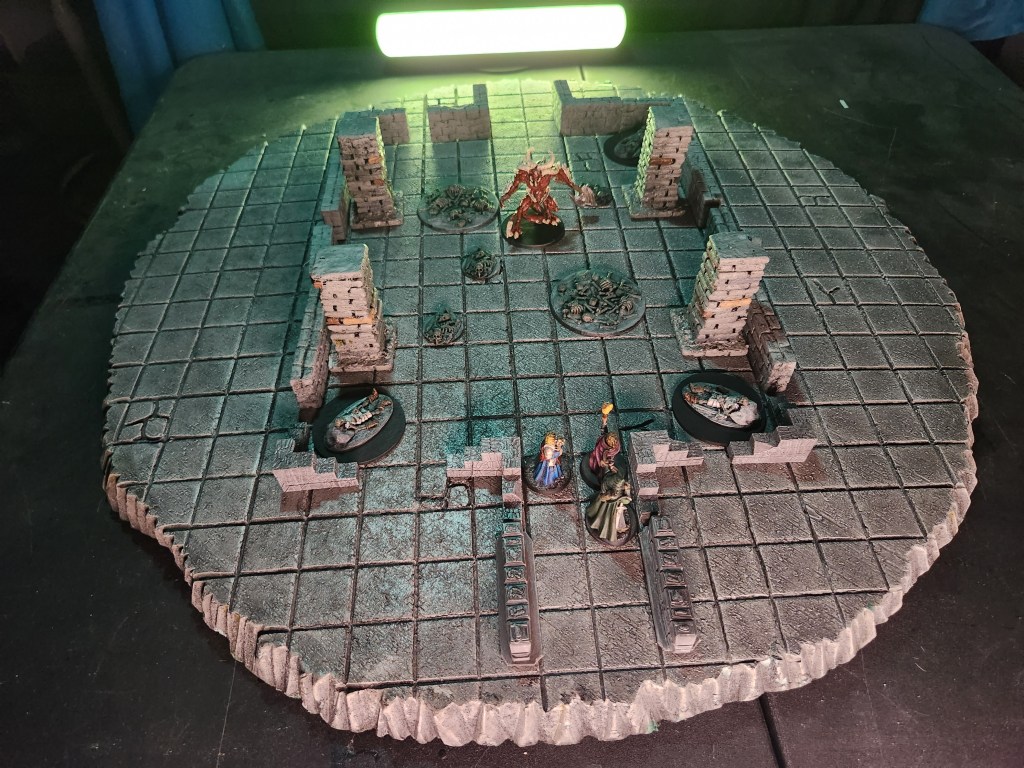 I start with the large dungeon UDT and build out a room of the dungeon. I decide on no doors since it does say that you can hear the footstep echoing in the dungeon. I drop some corners, walls, and pillars to complete the room.