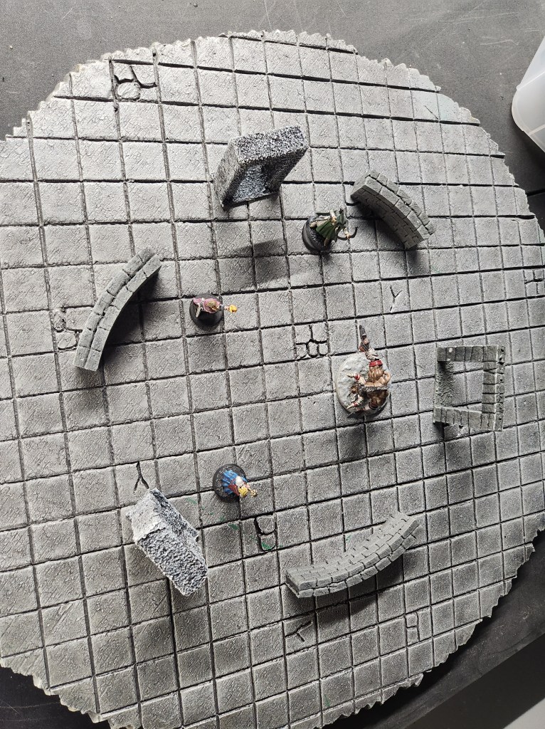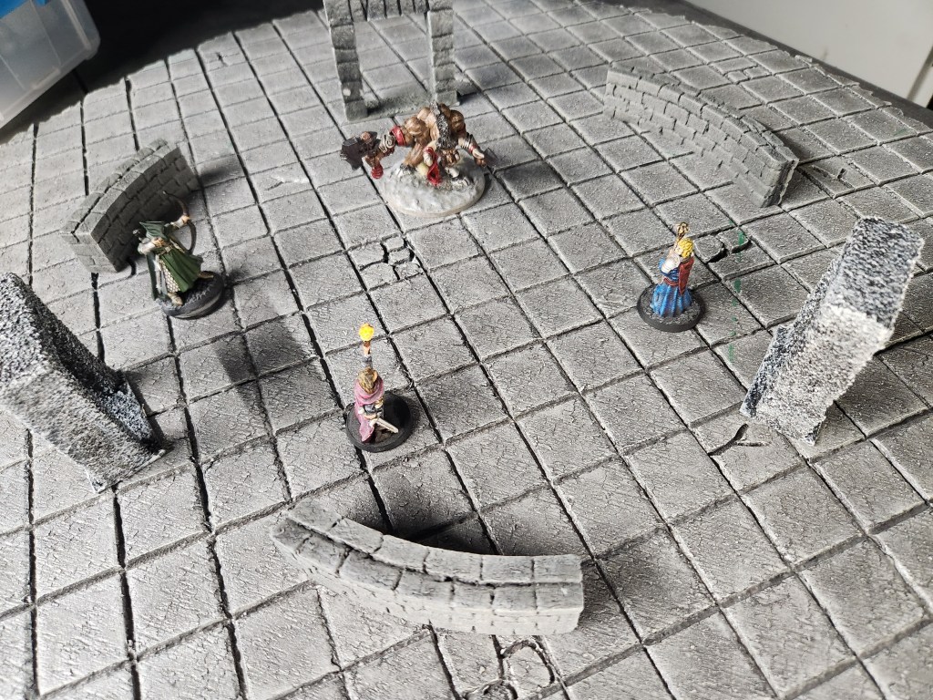 This is a simple setup. We start with the large dungeon UDT and place 3 doorways and some wall sections up near the middle of the UDT. We place the minotaur and the PCs in the room.