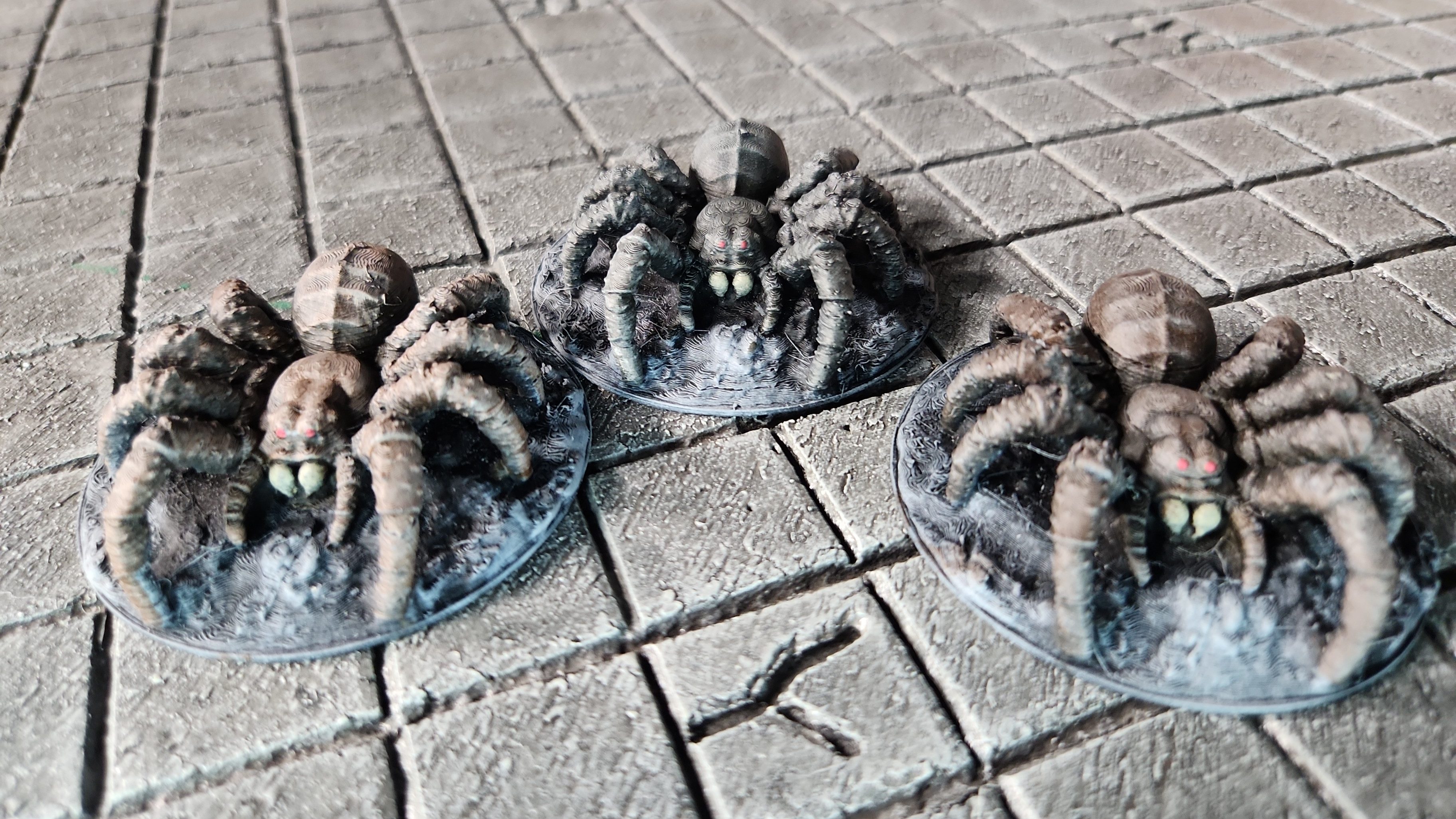 I got a group of 3 giant spiders printed and painted. I am thinking of making a few more of these since spiders are a great monster to use for low-level parties. I might put these up on my Etsy store.