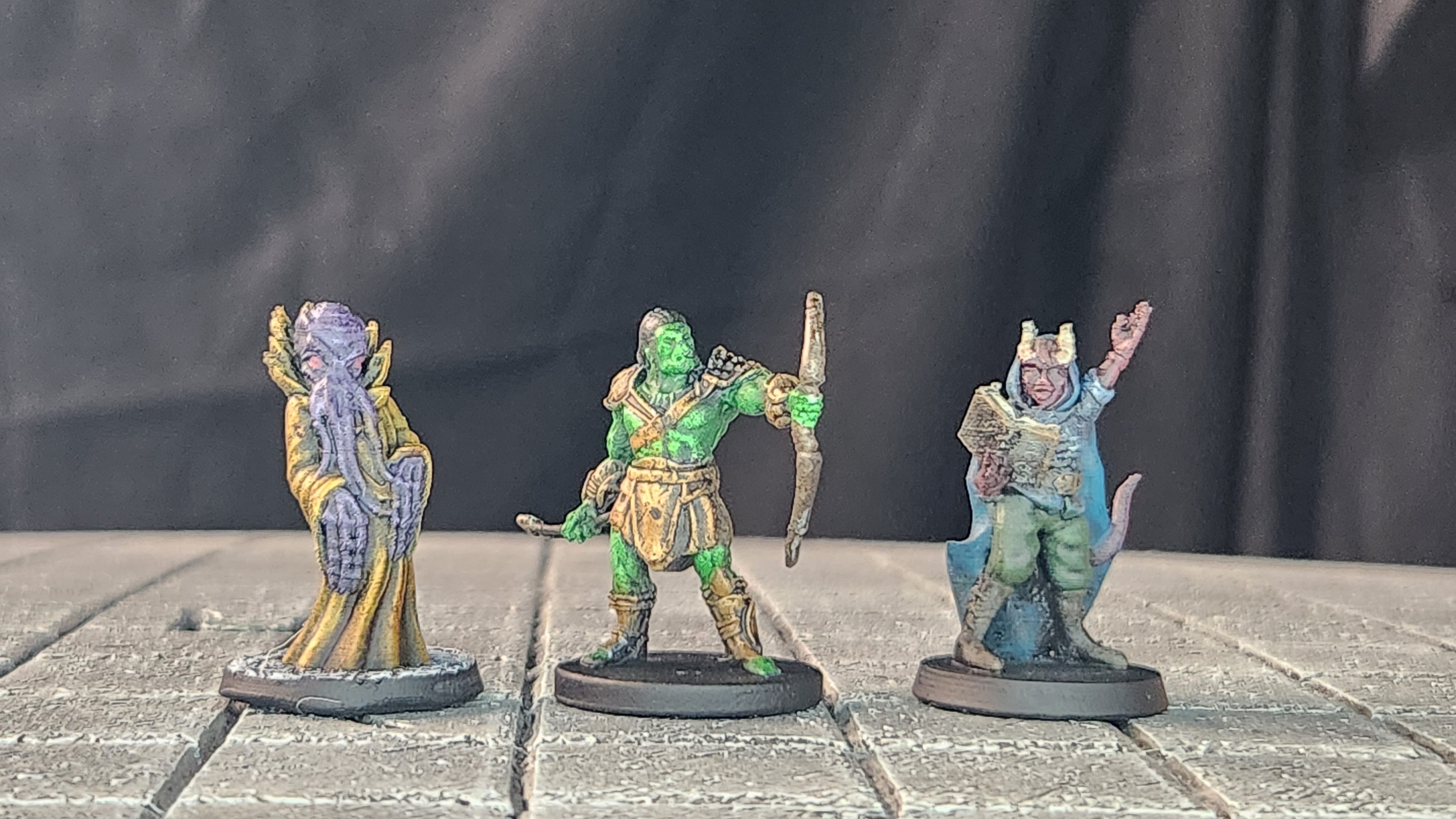 A mind flayer (BriteMinis), an orc archer (Wizkids), and a tiefling wizard (BriteMinis).