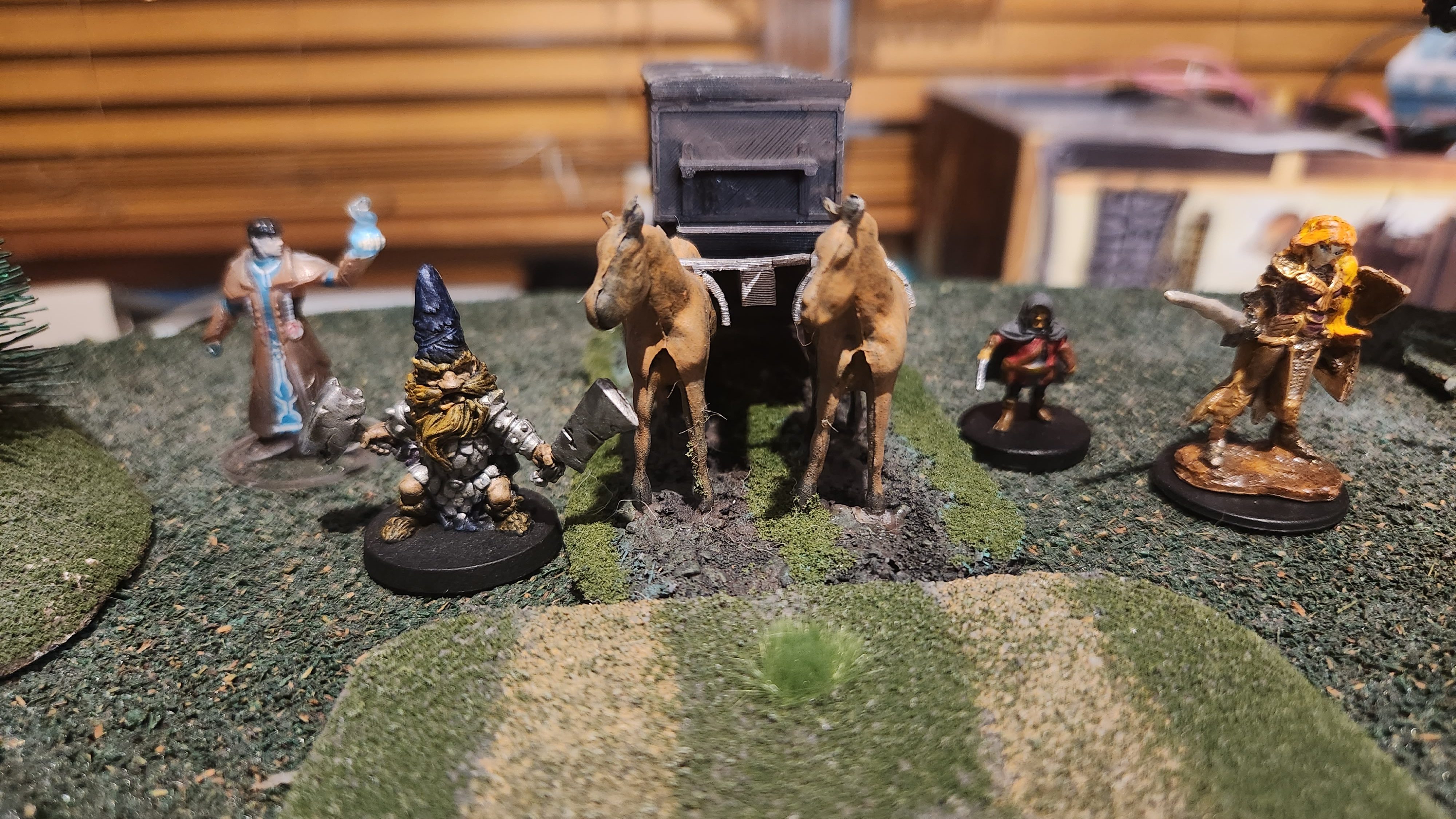 The PCs have been hired by a dwarf named Gundren Rockseeker to take a wagon filled with supplies from Neverwinter to the small town of Phandalin, which is a couple of days’ journey Southeast. Gundren was going to ride ahead with his warrior escort, Sildar Hallwinter.