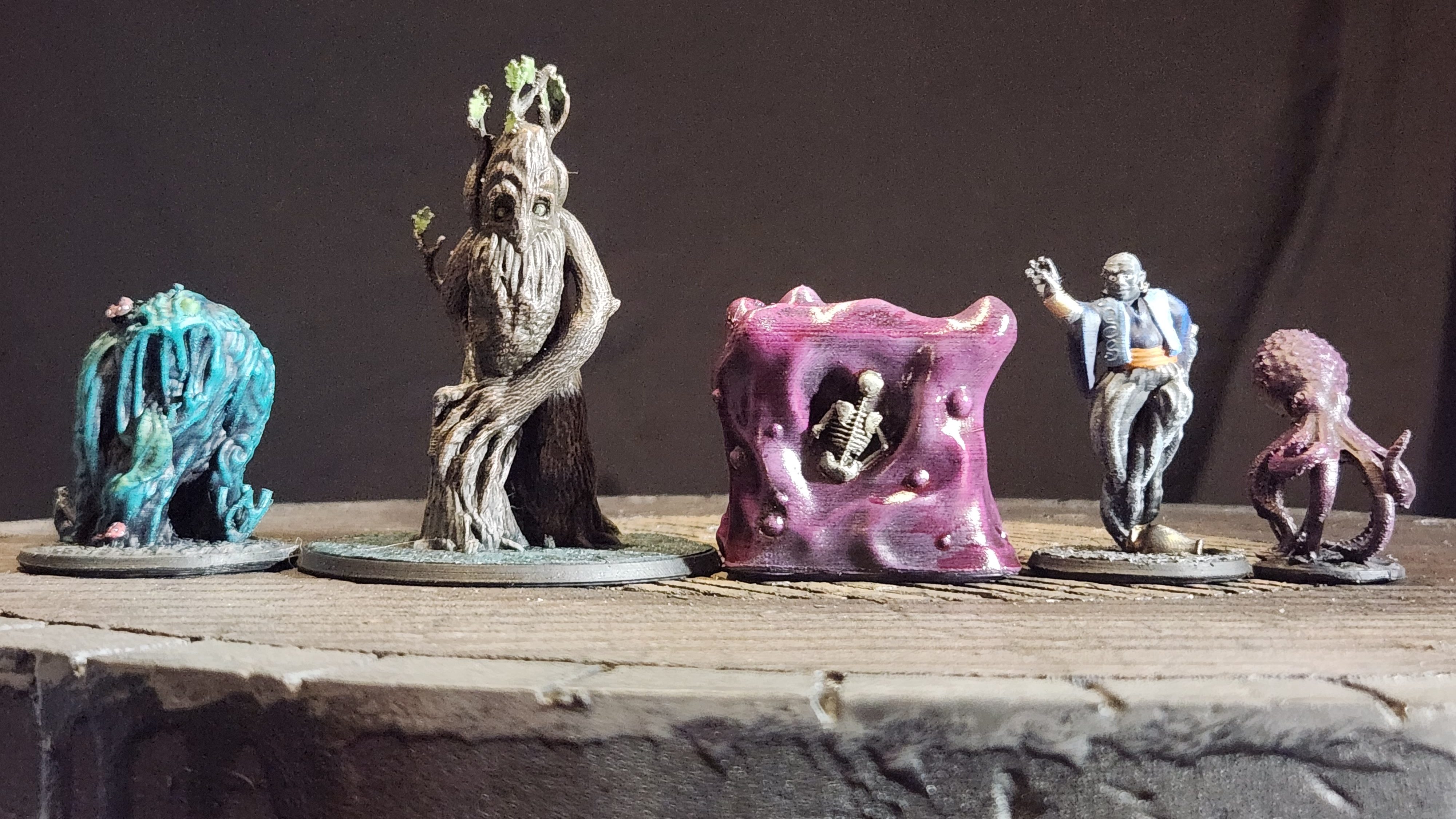 I got more miniatures painted up over the week. Here is a Shambling Mound (Brite Minis), a Treeman (Brite Minis), a Cube O Snot (Fat Dragon Games), a Djinn 9Brite Minis) and an Octopus Warrior (Fat Dragon Games).