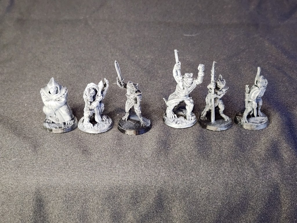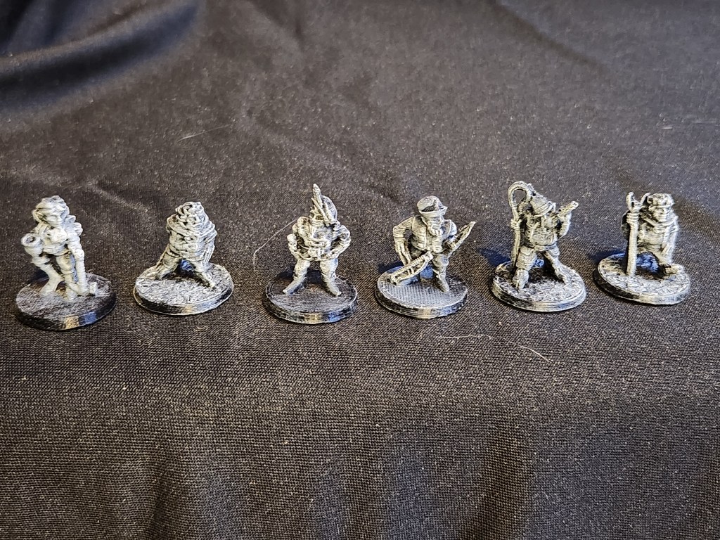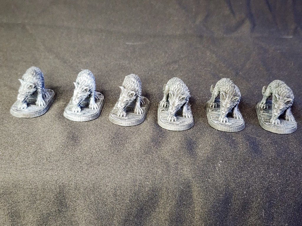 I completed another set of 6 wolves. I am thinking of keeping these wolves for my campaign of Shadowdark. I like the brown wolves on the green base with red eyes. I have wolves as an entry in the random encounters table and it would be nice to have a set to just drop onto the table if they are rolled. I need to start working on printing out the rest of the encounters from that table as well.