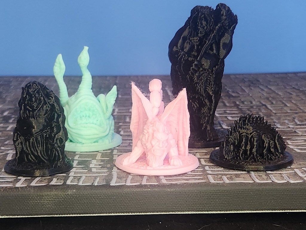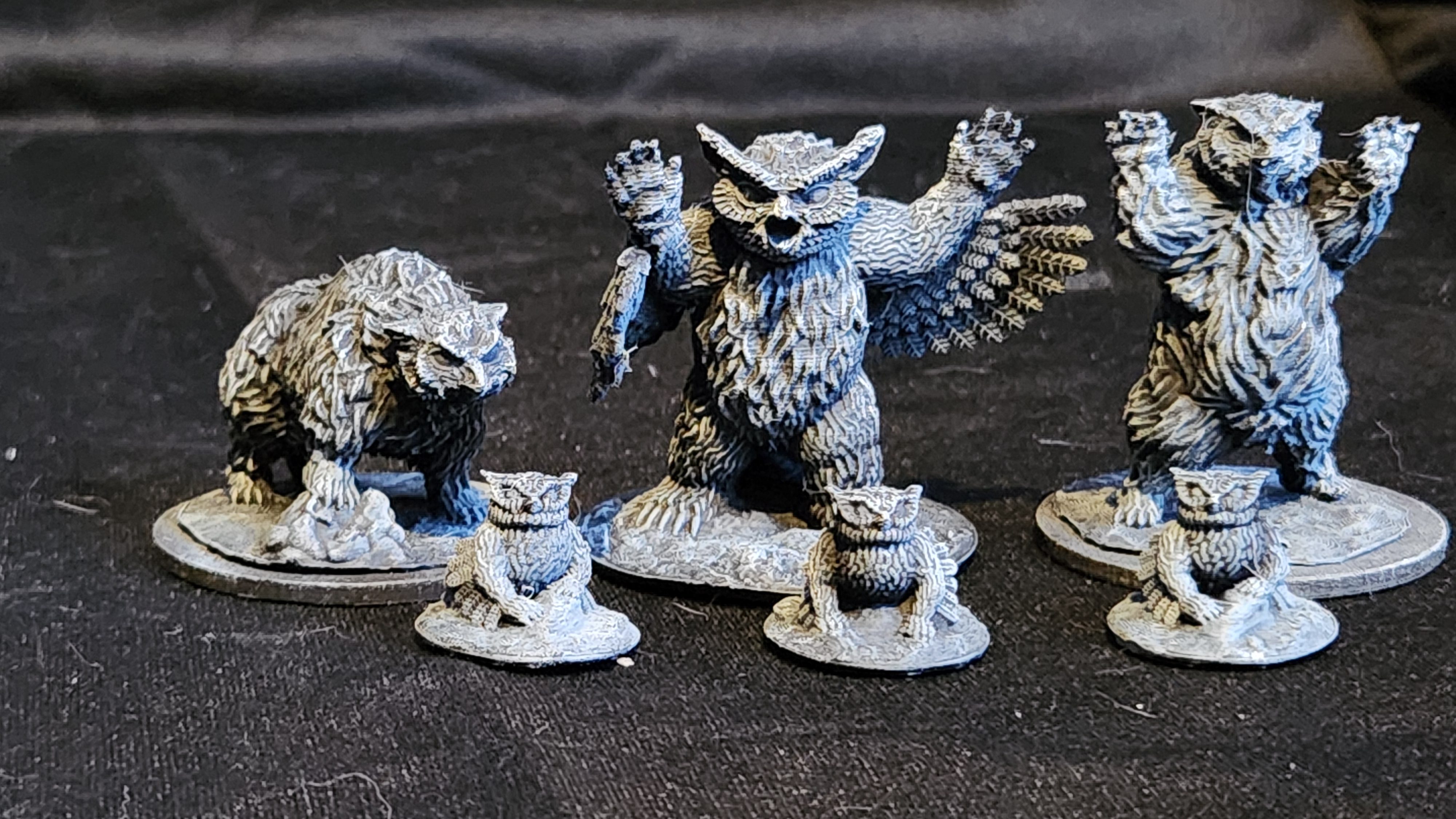 I got an owlbear family printed (FDM), primed, and highlighted.