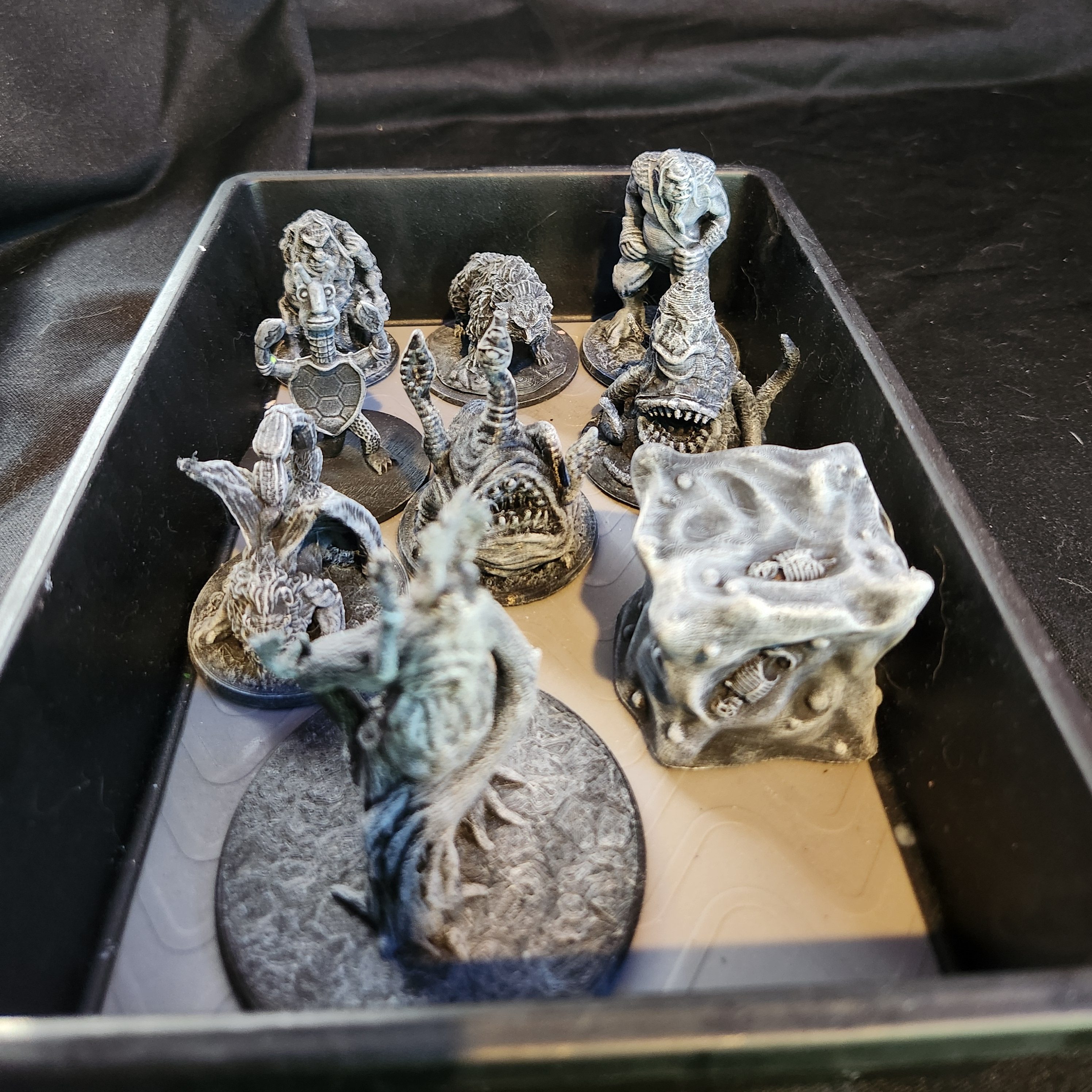 A miscellaneous group of resin-printed models. All are primed back with a zenithal highlight.