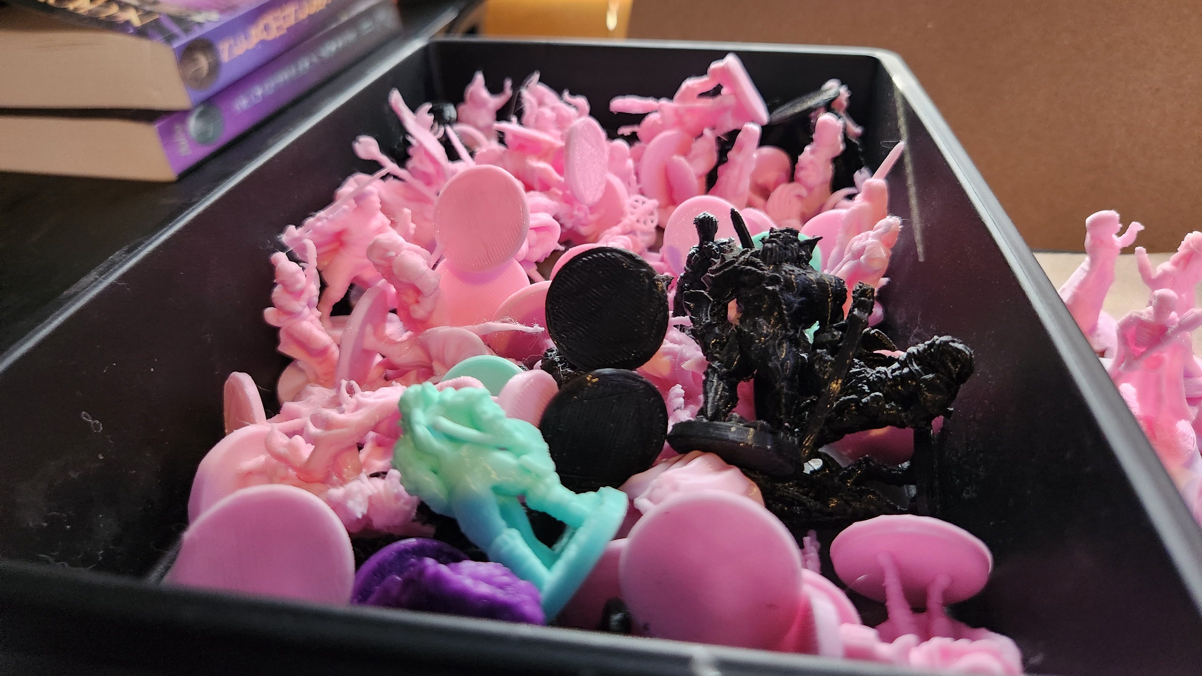 I also have another container of 3D-printed FDM miniatures to get organized. Many of these are from the new Everyday Heroes collection from EC3D Designs. I will get some of them primed and painted, others will just end up in my Etsy store in the unpainted miniatures section.