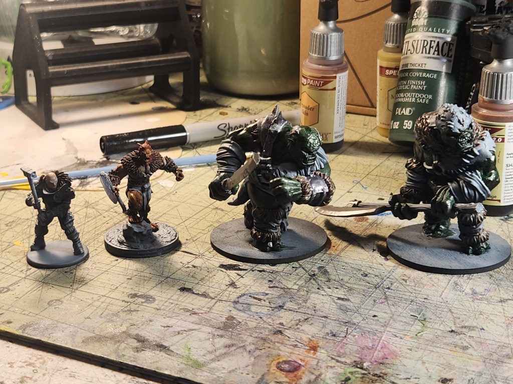 These miniatures have some painting started but have been moved down the priority line for the trolls and the barbarian. Probably won’t finish any of these this week.