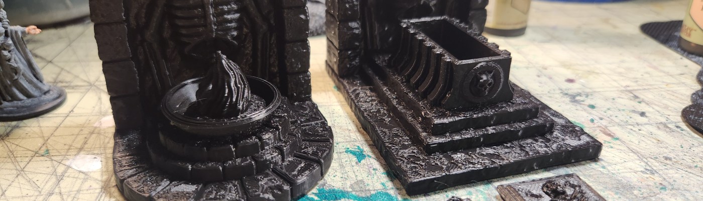 I also printed out these skeleton shrines from Fat Dragon Games. I don’t like using tea lights with the models so I just print them out in solid PLA and glue the pieces together. I am not sure if I want to glue the body into the casket on the right or leave it as separate pieces. What do you think?