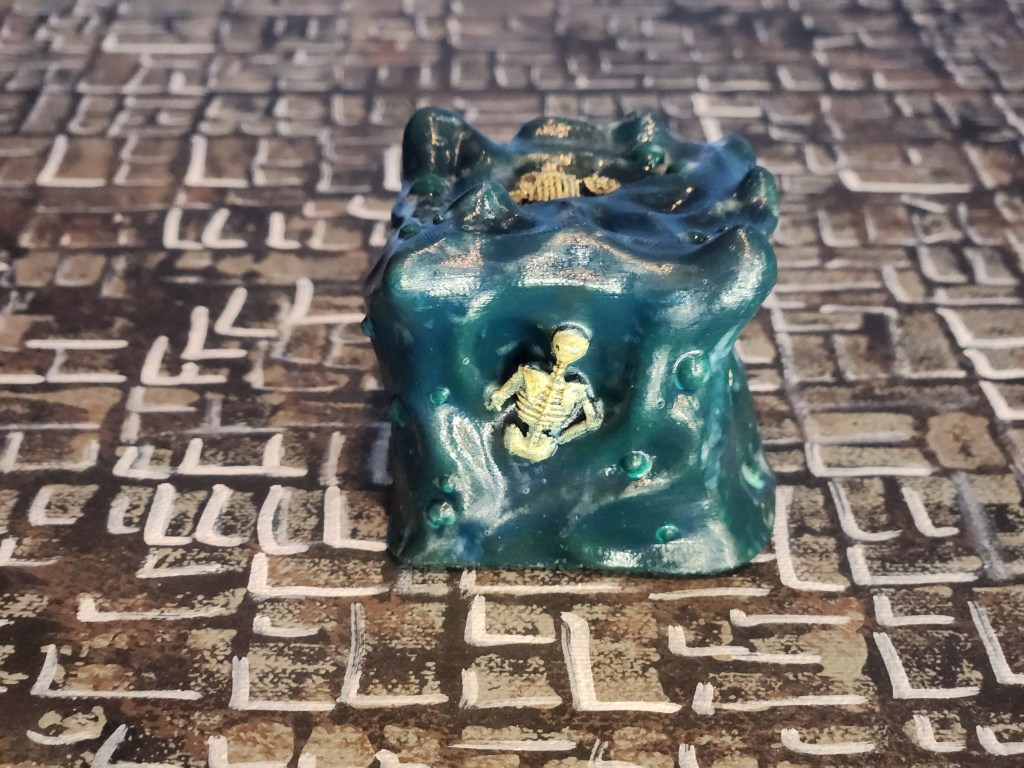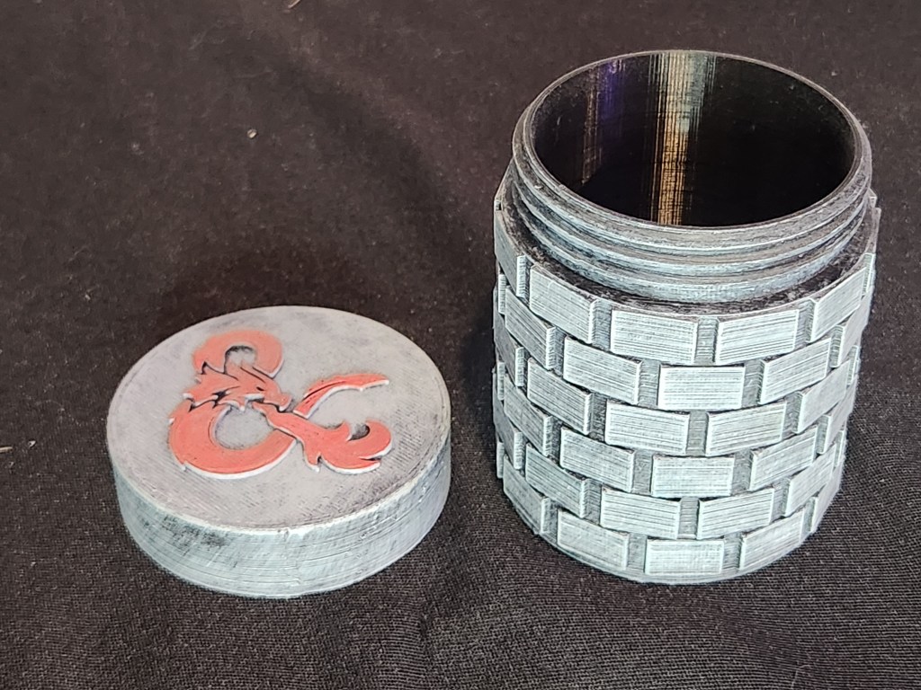 I also had this container in my pile of shame that I painted up. I will give this to the coworker’s daughter. She could use it to hold dice or other small objects.